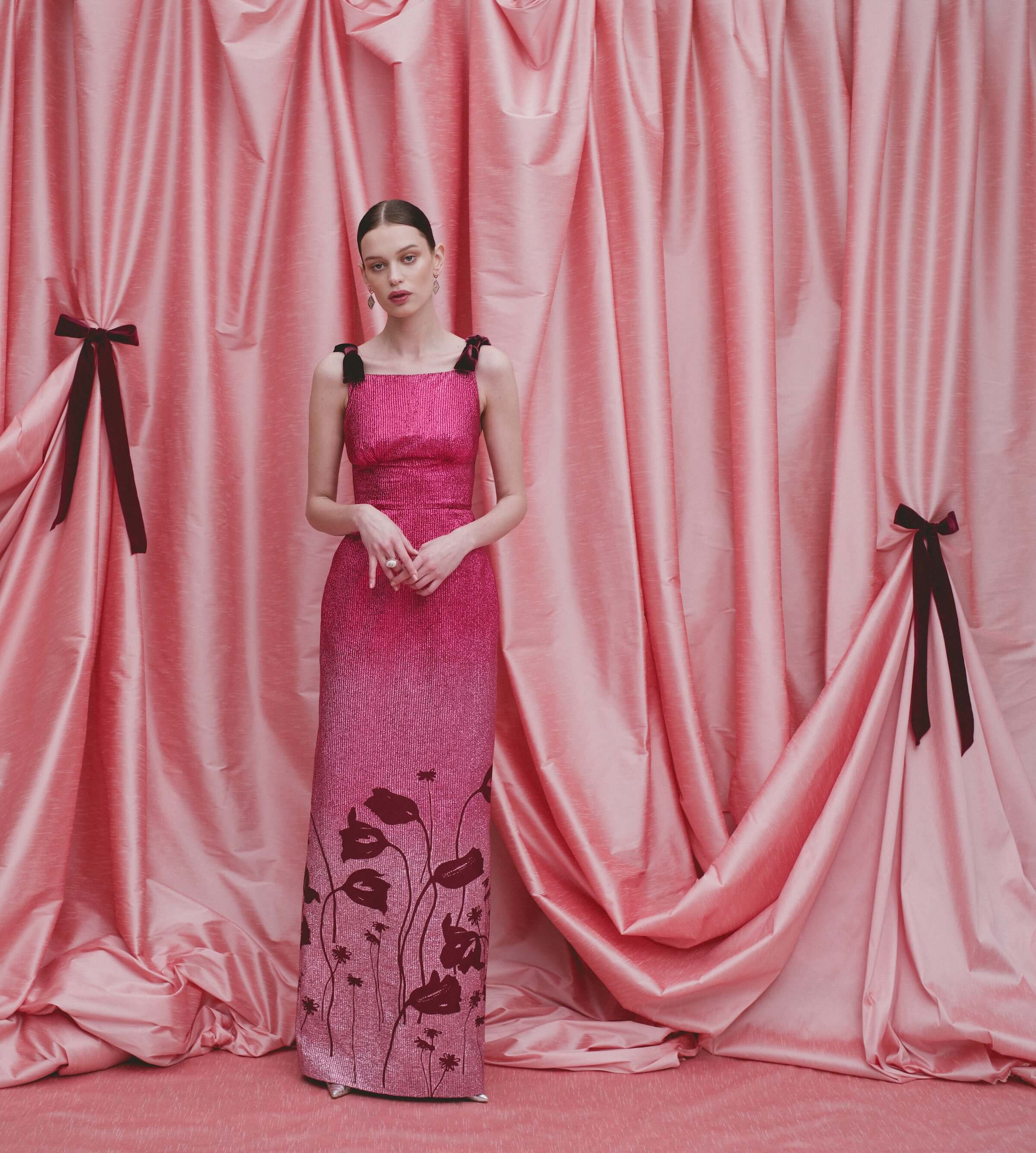 PRE-ORDERSolange Metallic Pink Floral Ombre Gown