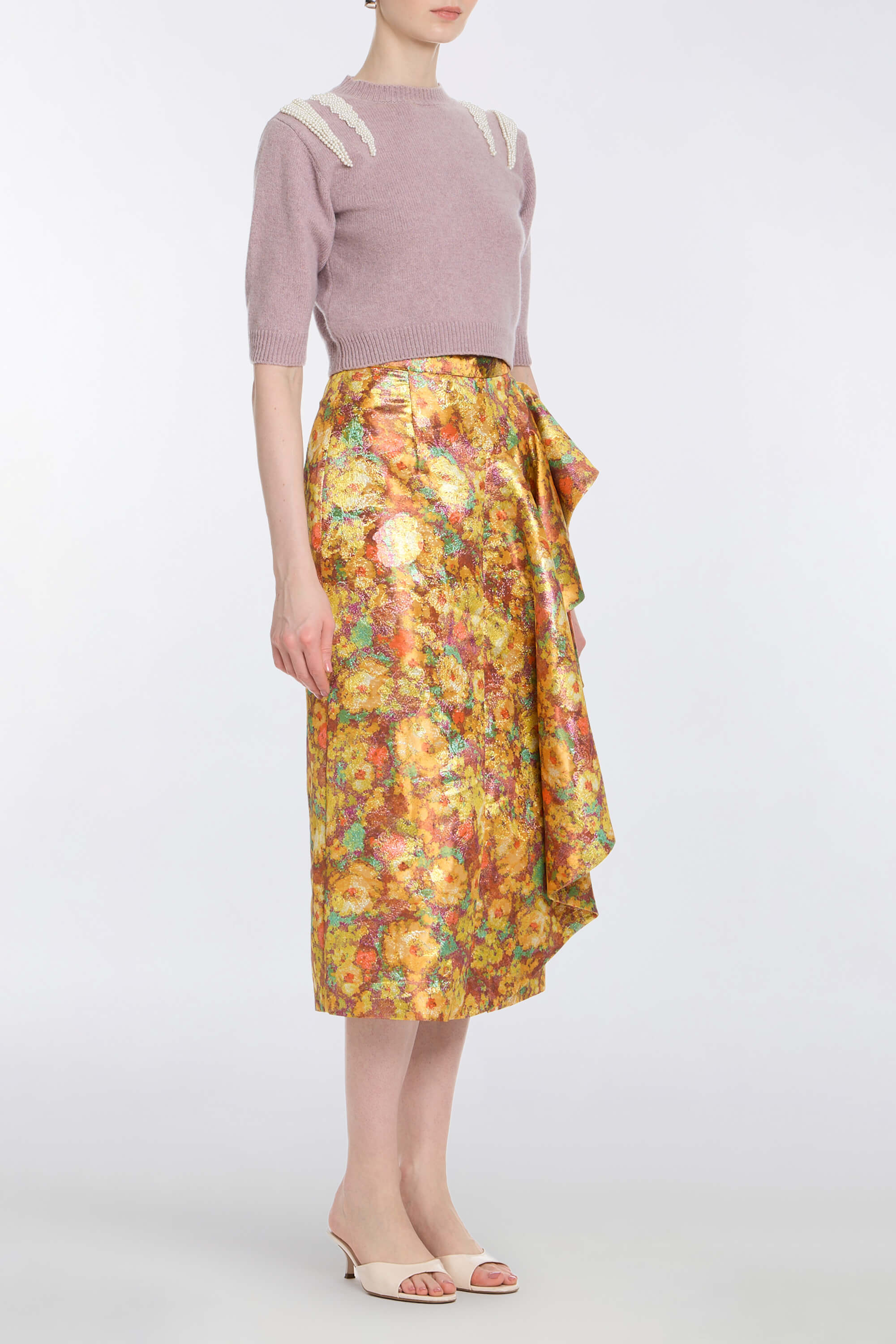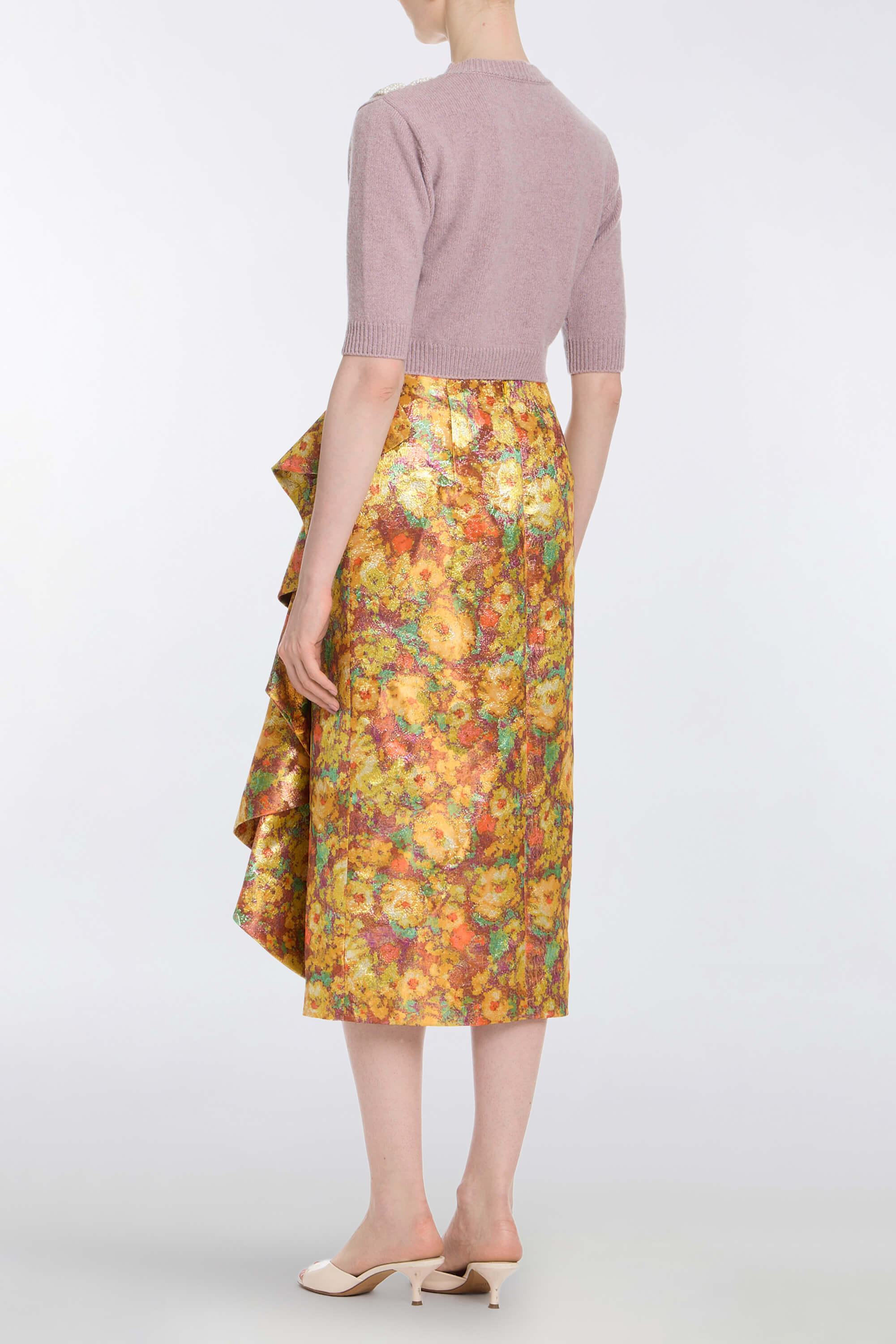 PRE-ORDERSoleil Metallic Watercolor Floral Brocade Midi Skirt