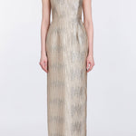 Yolanda Wavy Gold Brocade Gown