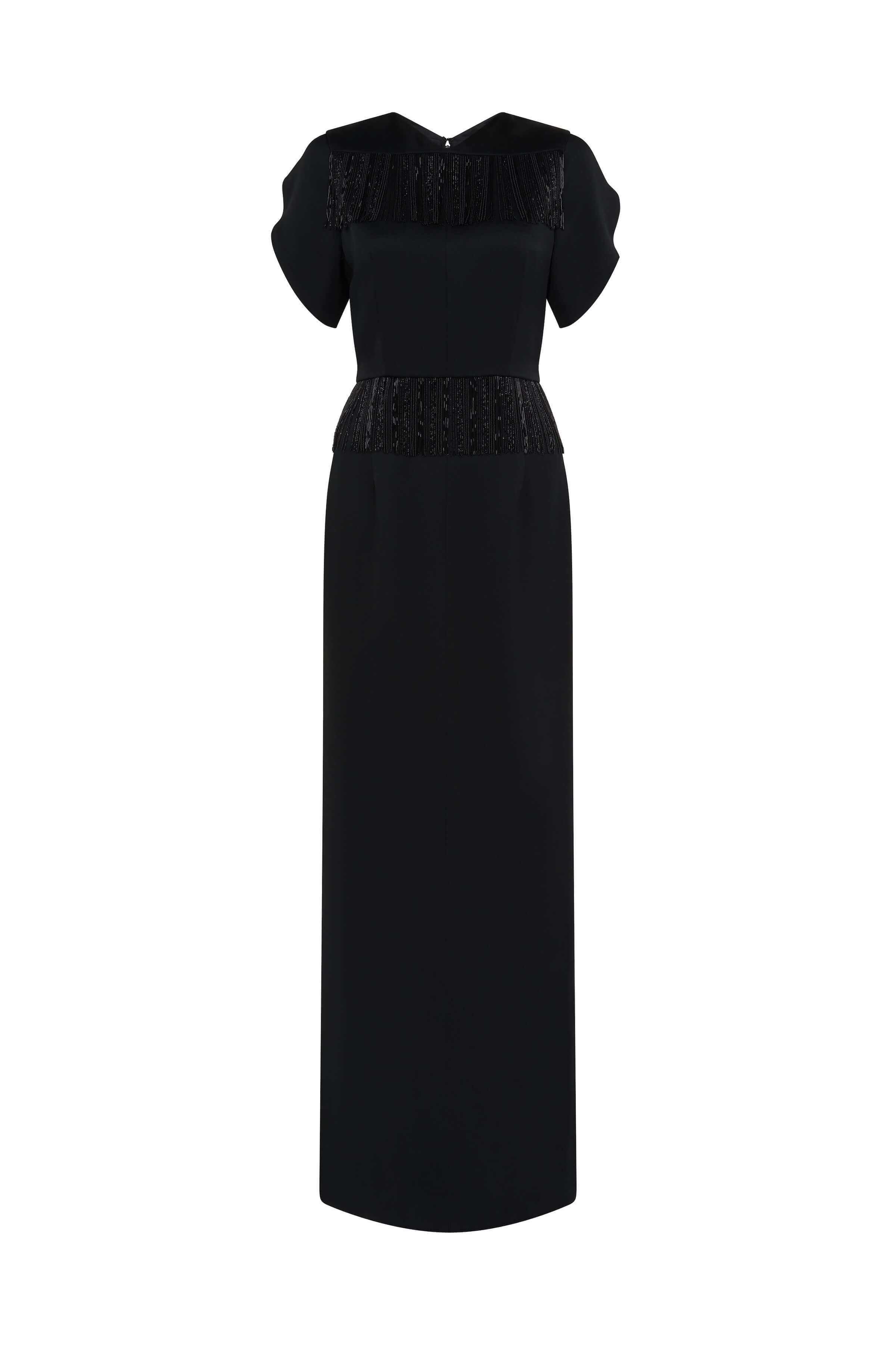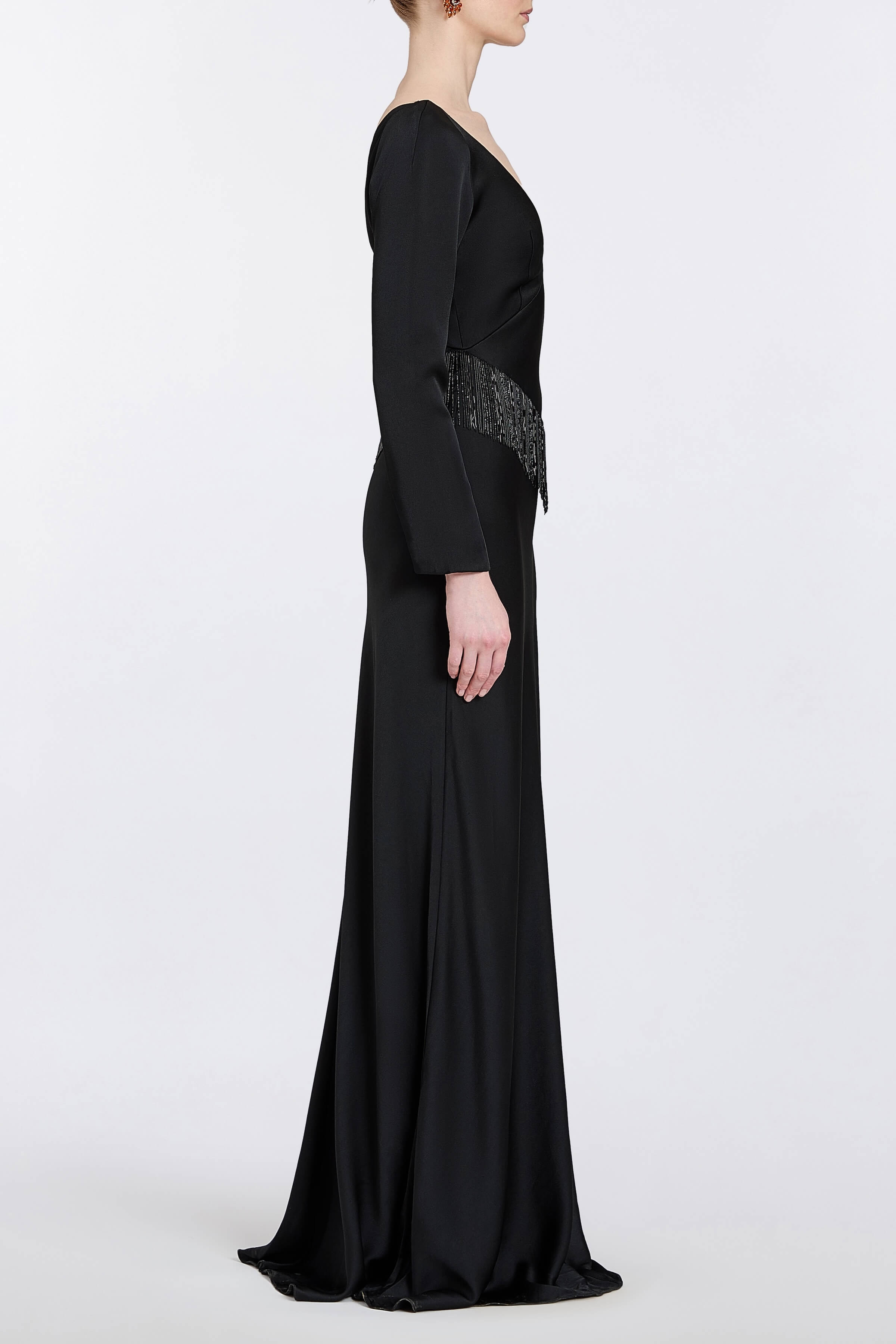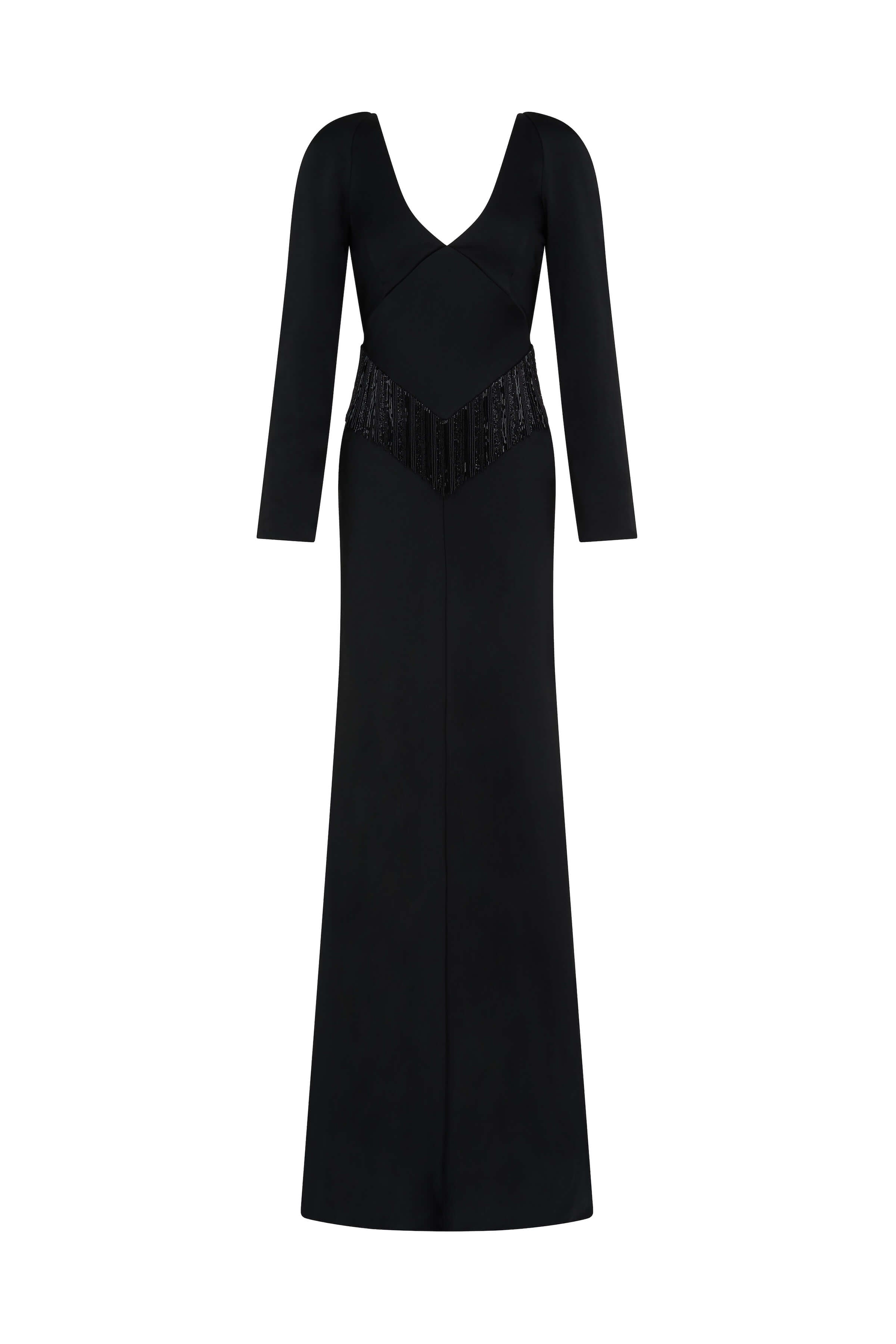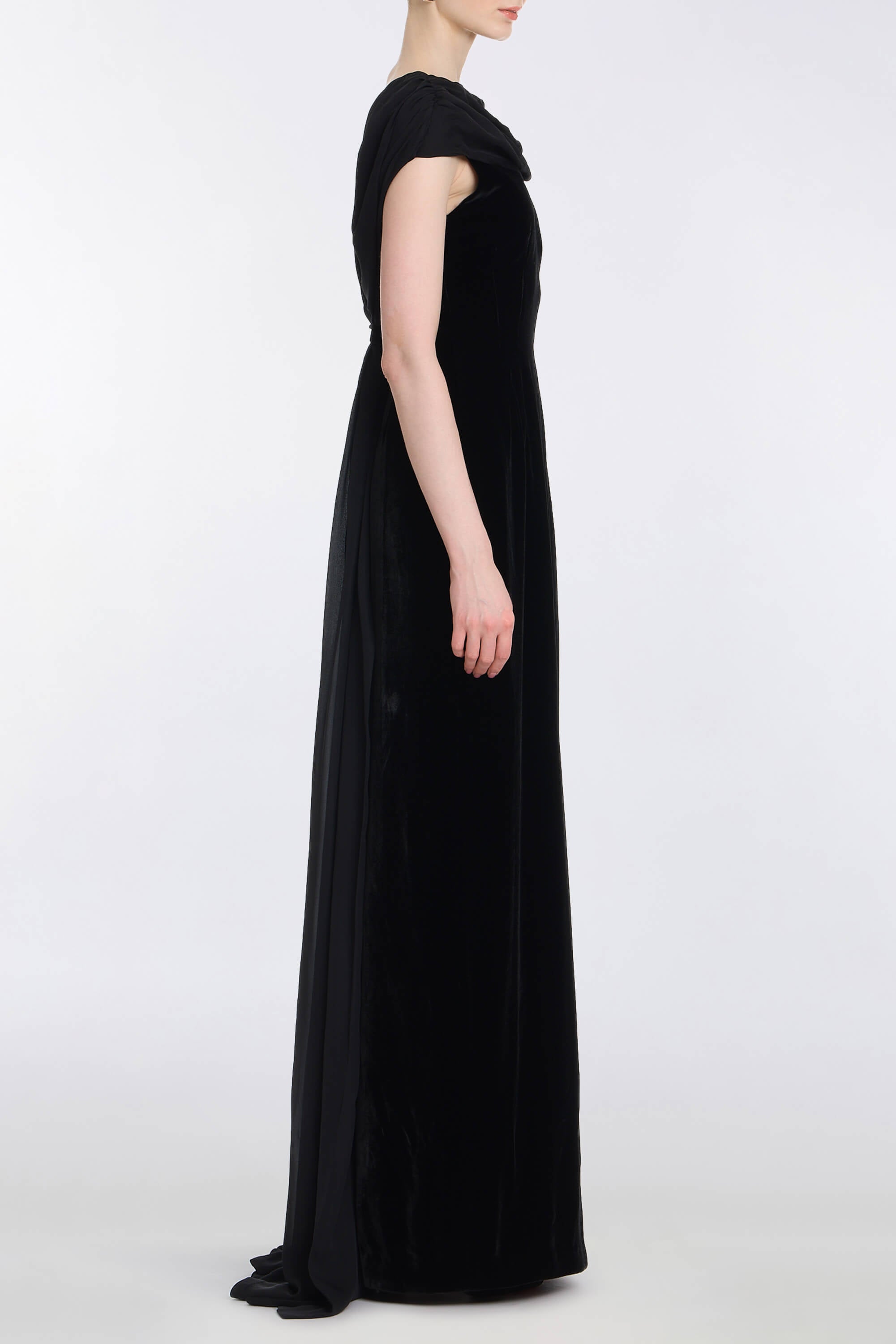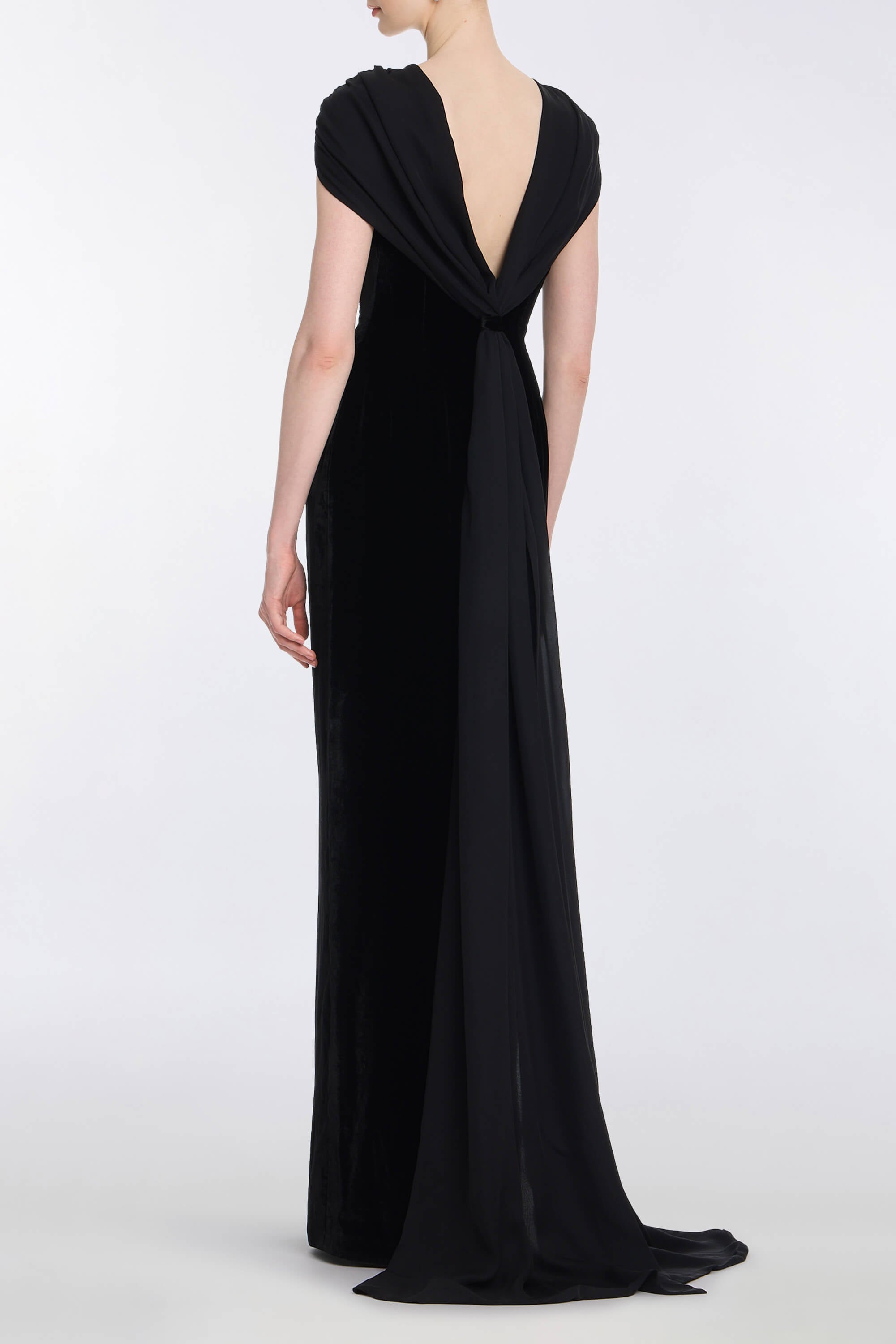PRE-ORDERVesper Black Velvet Gown With Shawl And Train