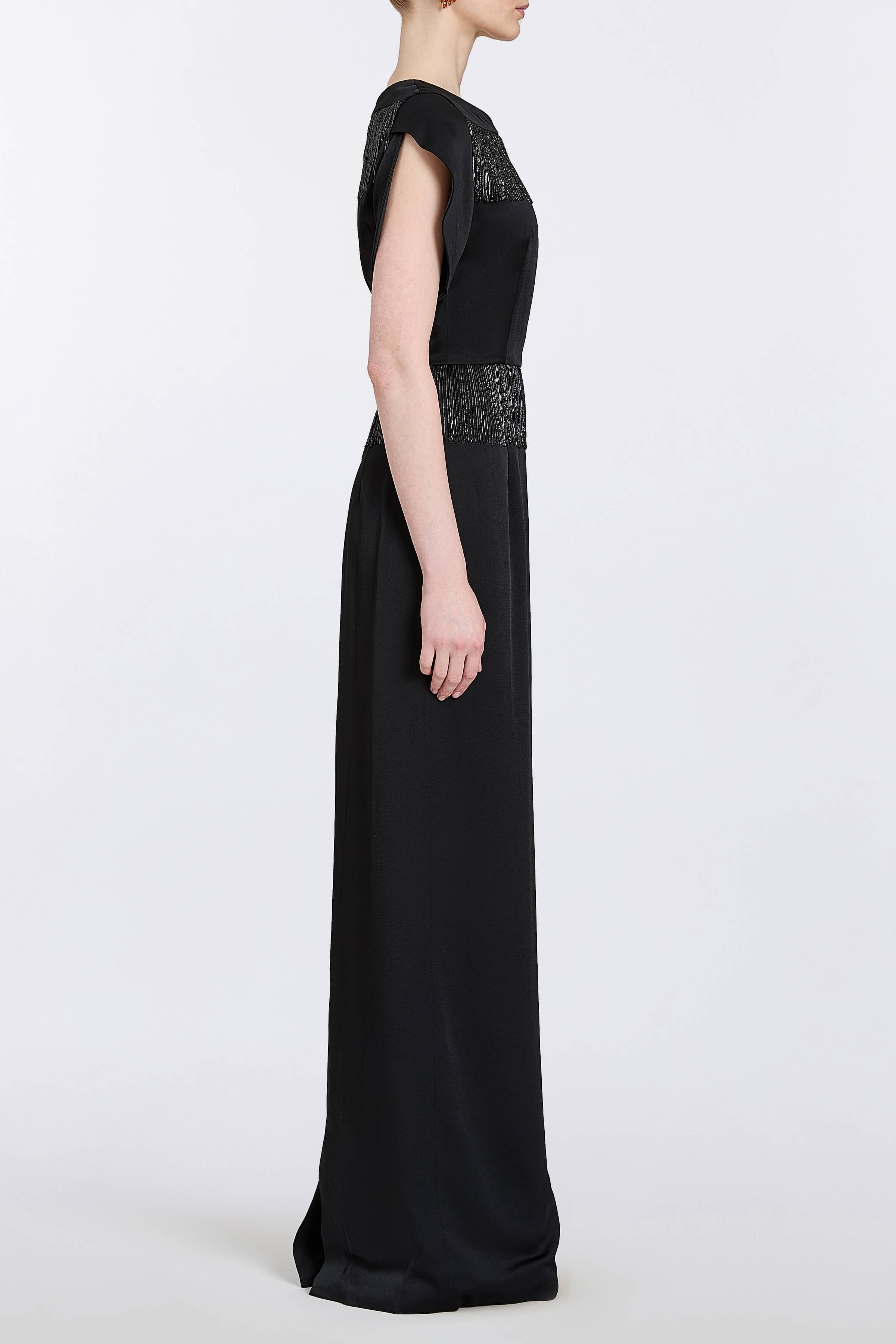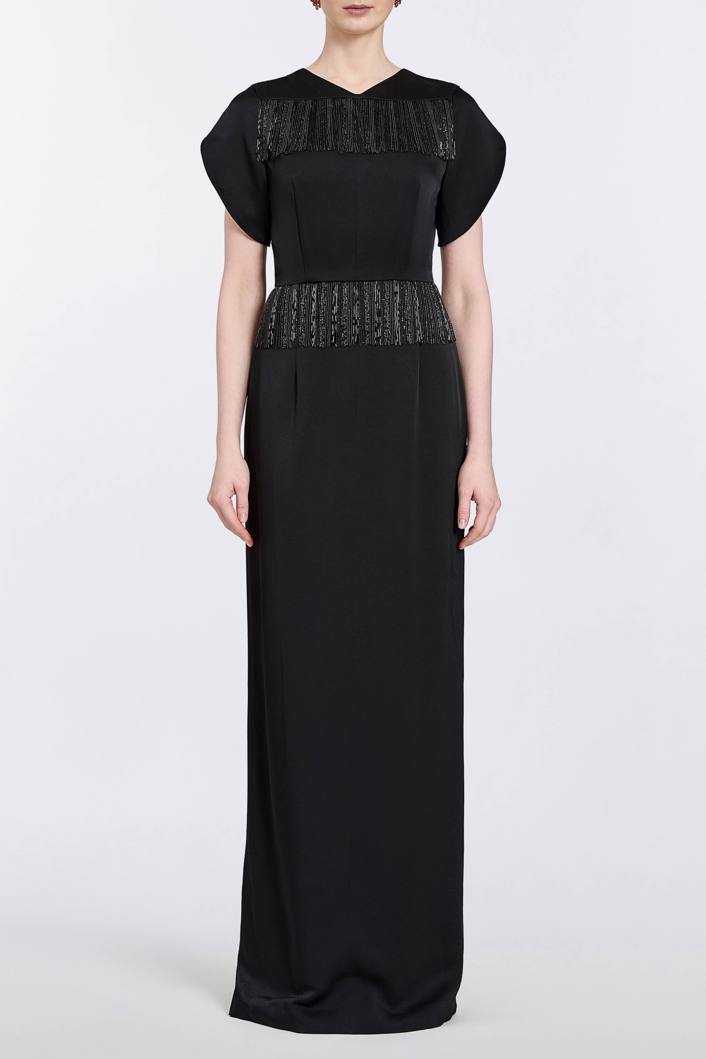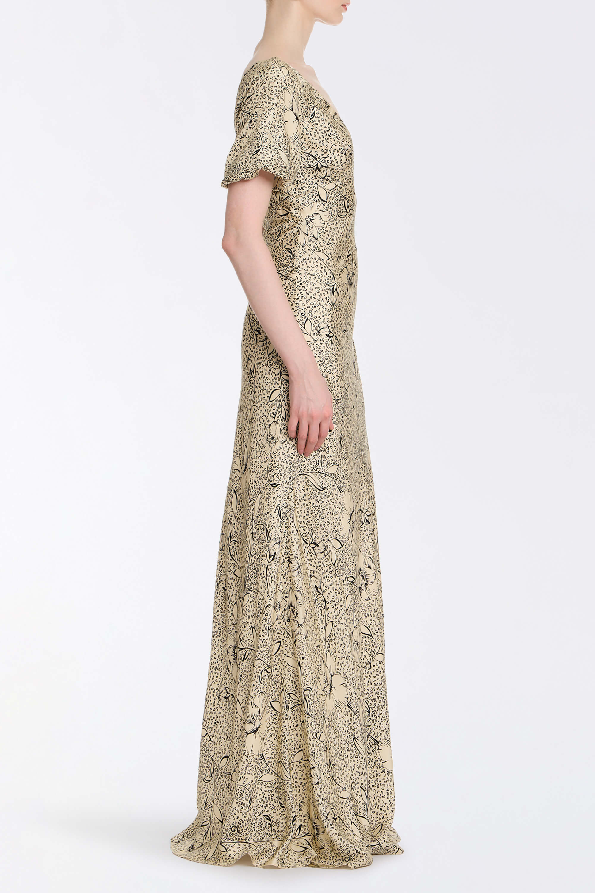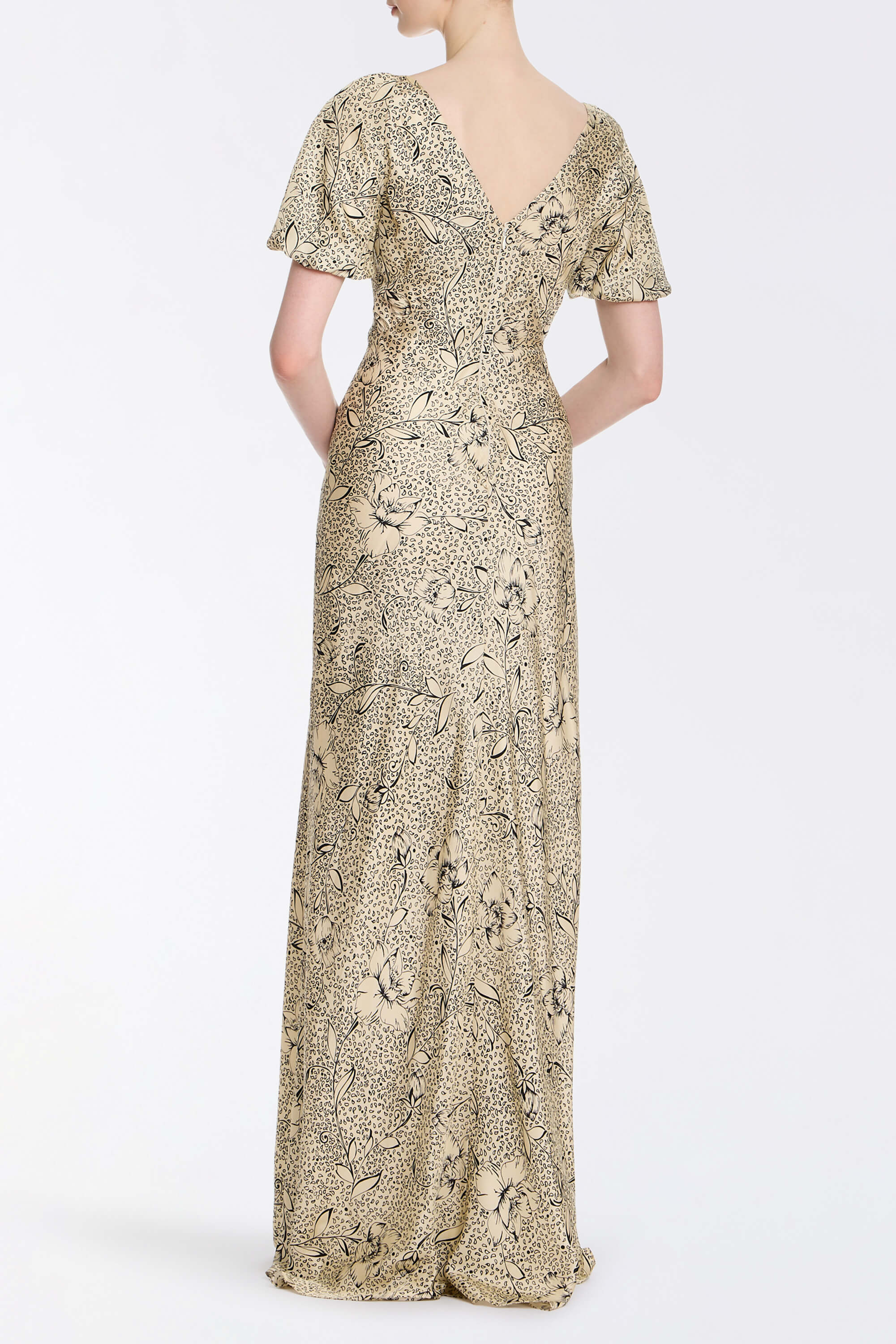 PRE-ORDERLilou Black Floral Printed Twill V-Neck Gown