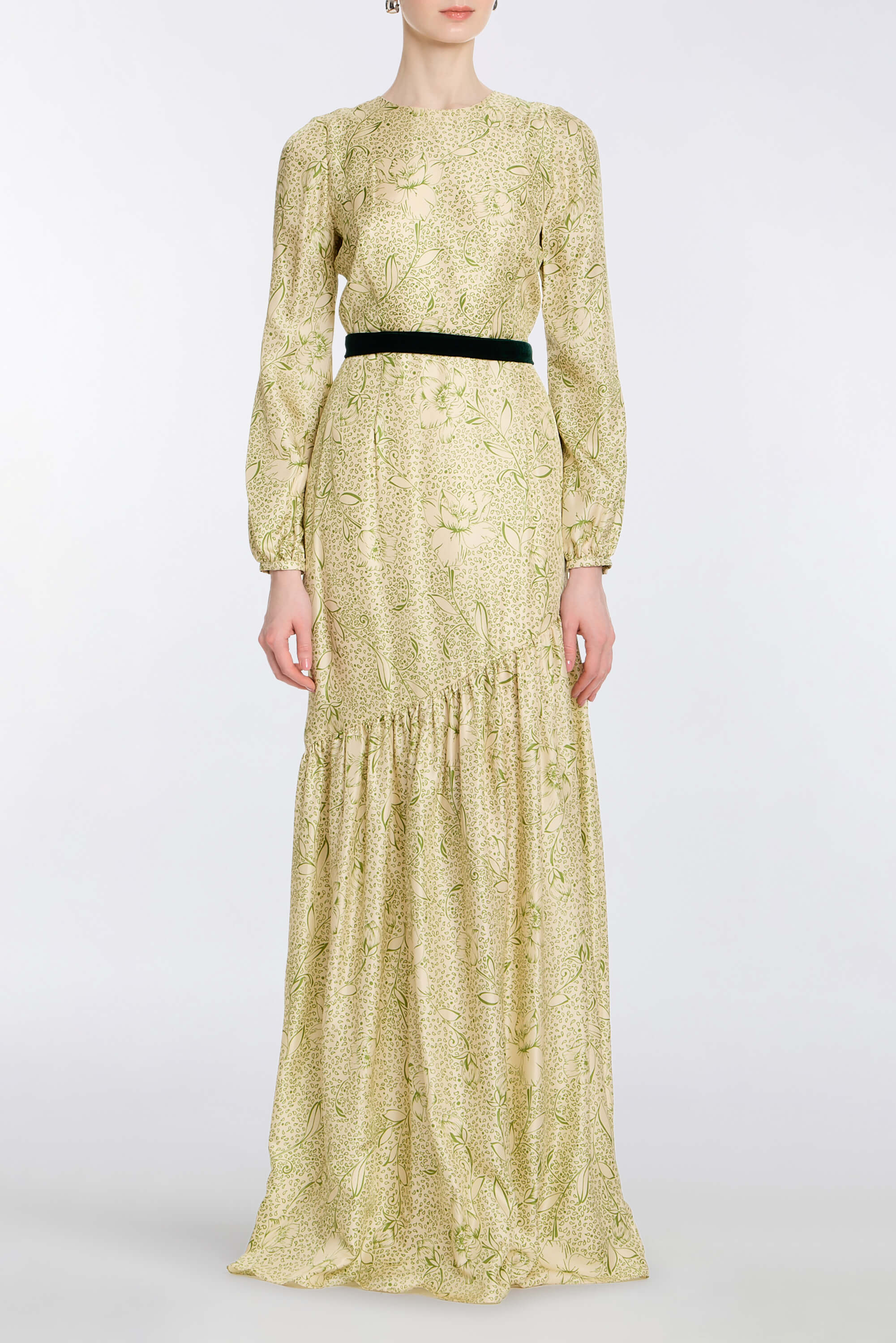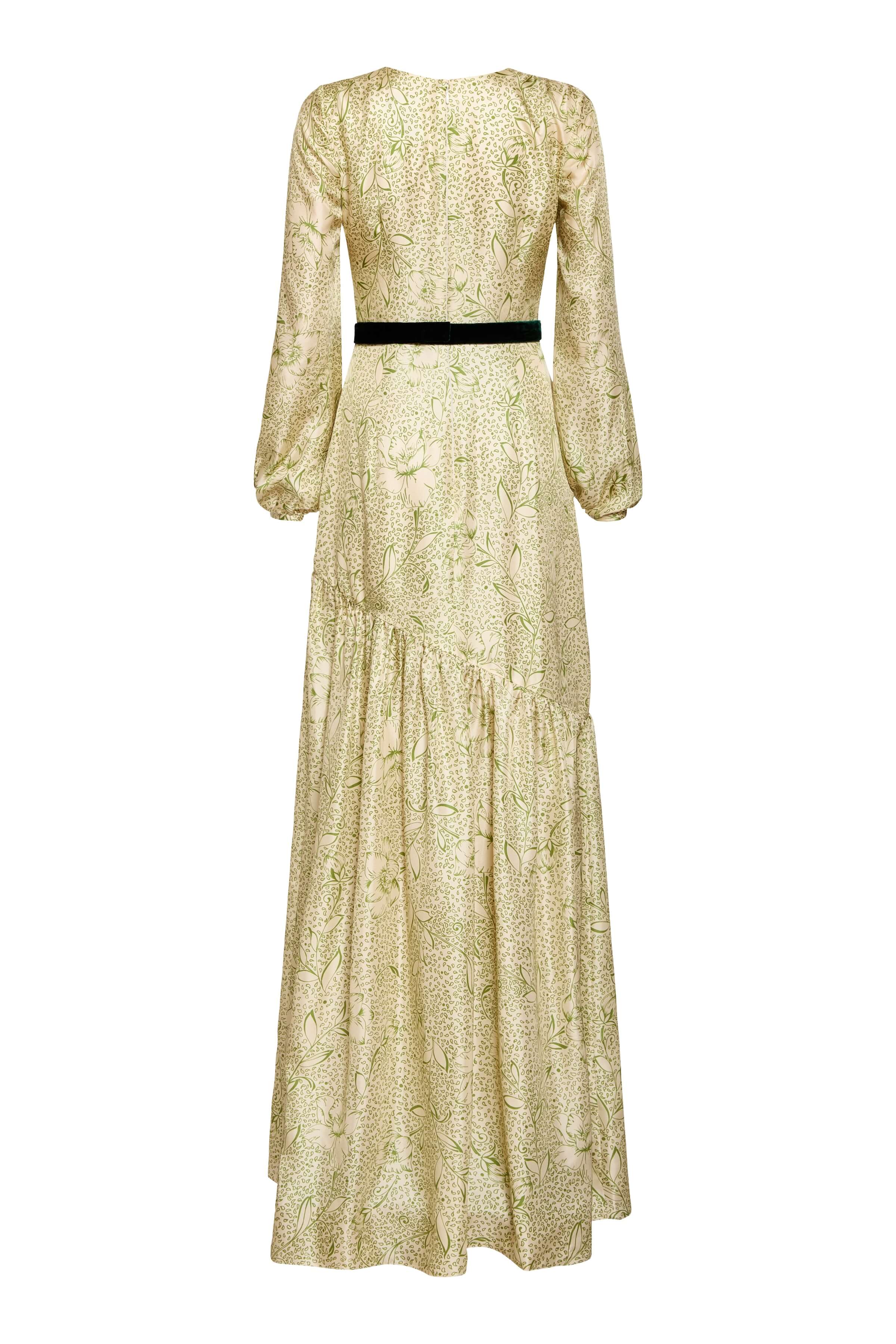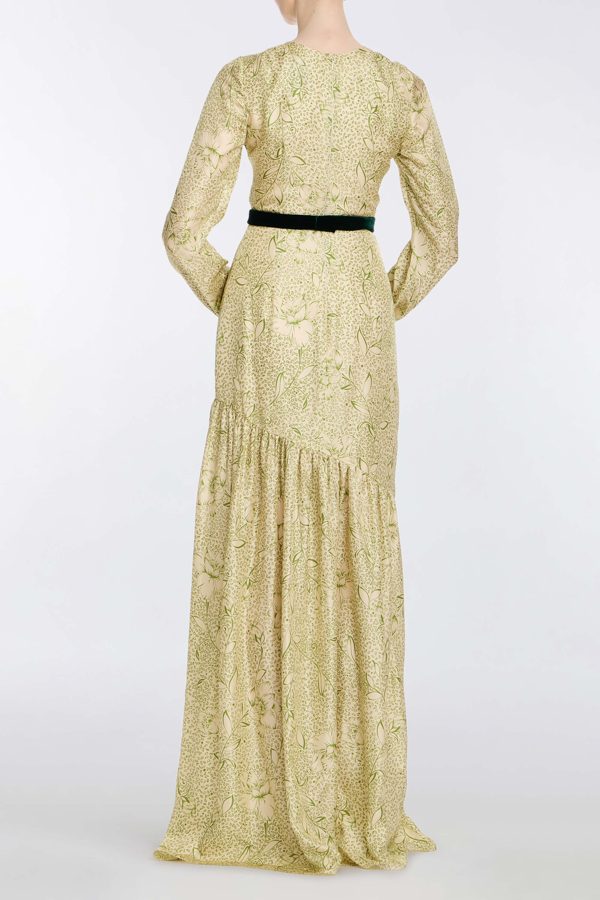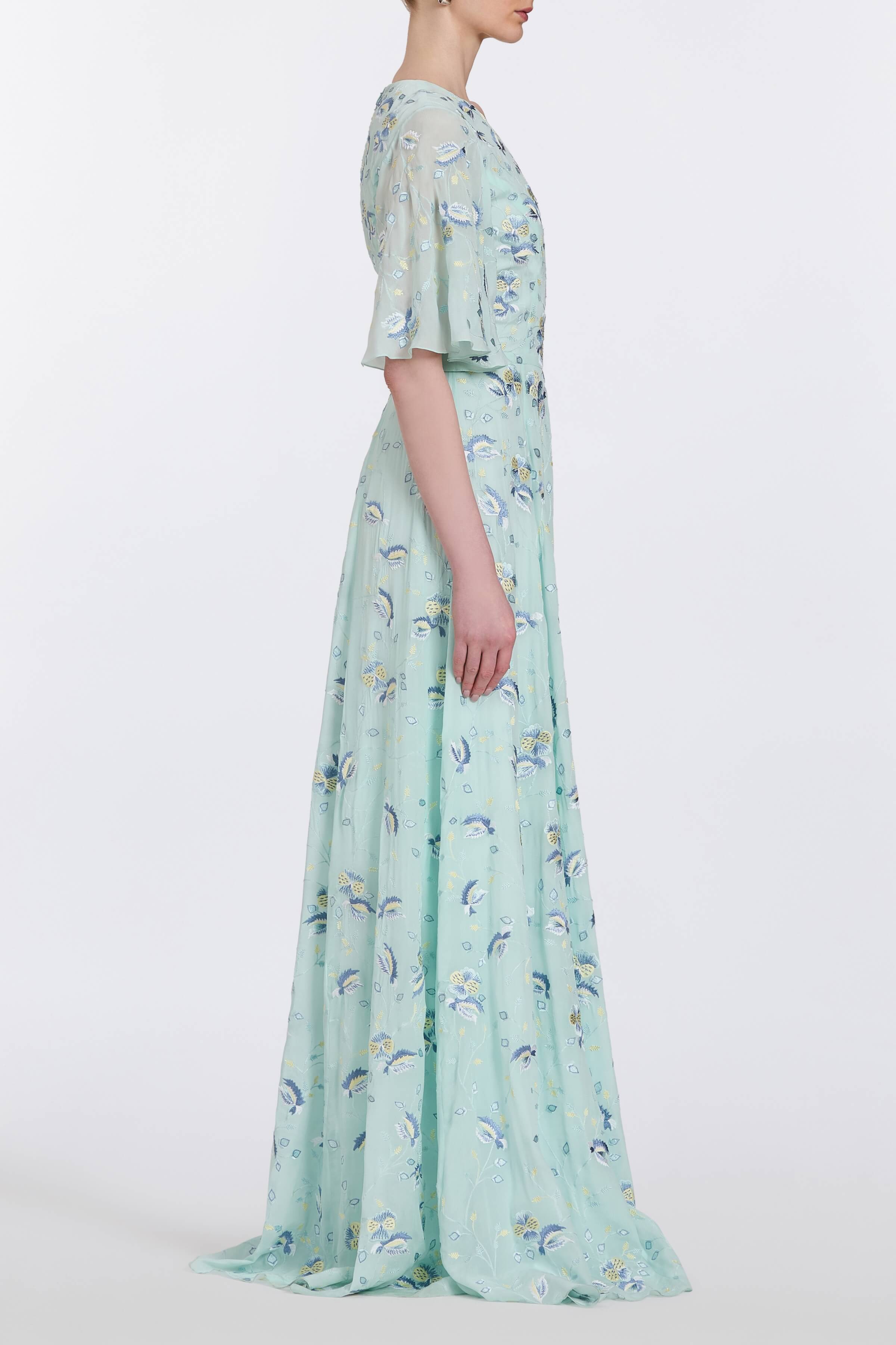PRE-ORDERCalypso Green Floral Printed Twill Gown