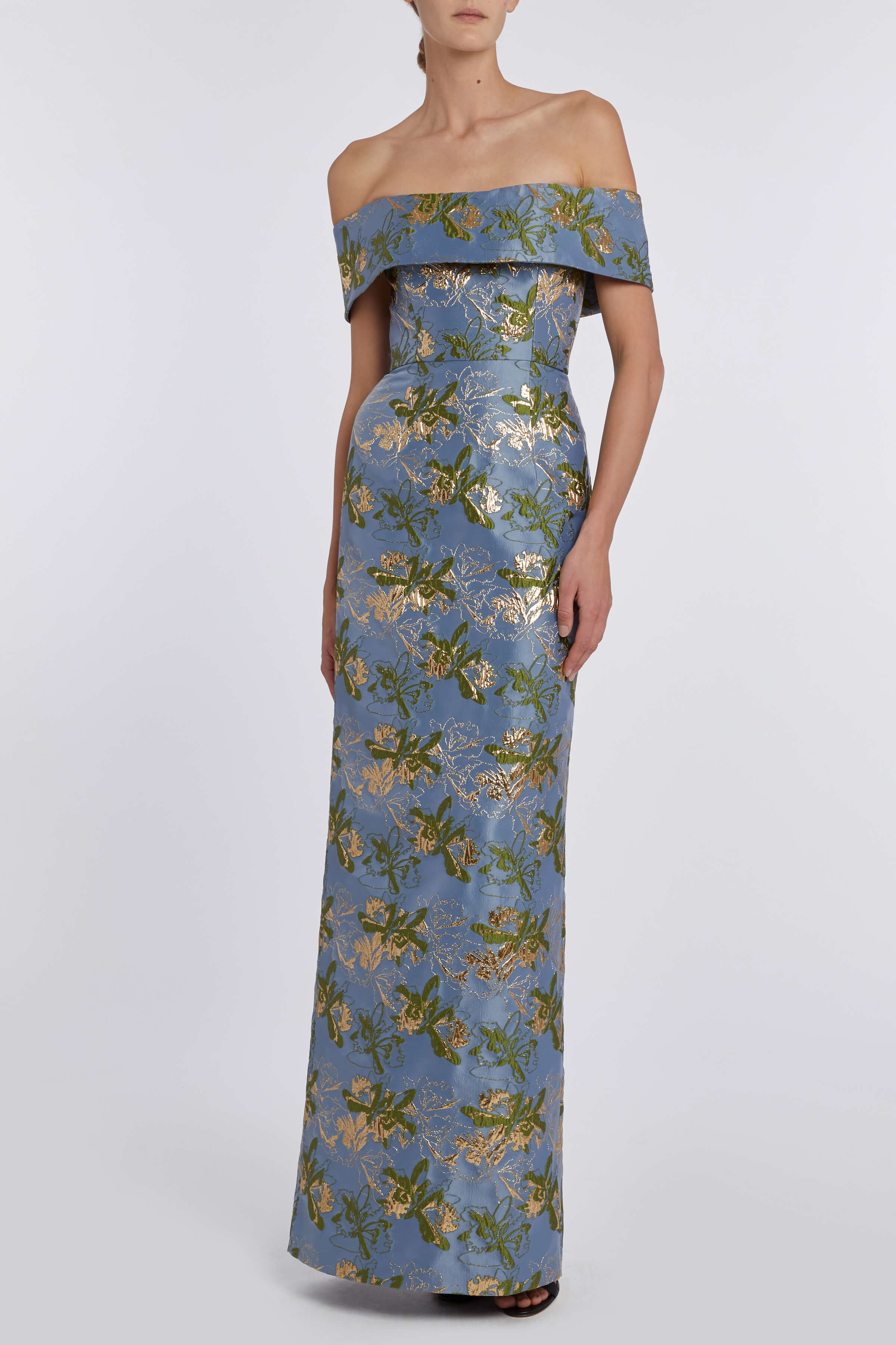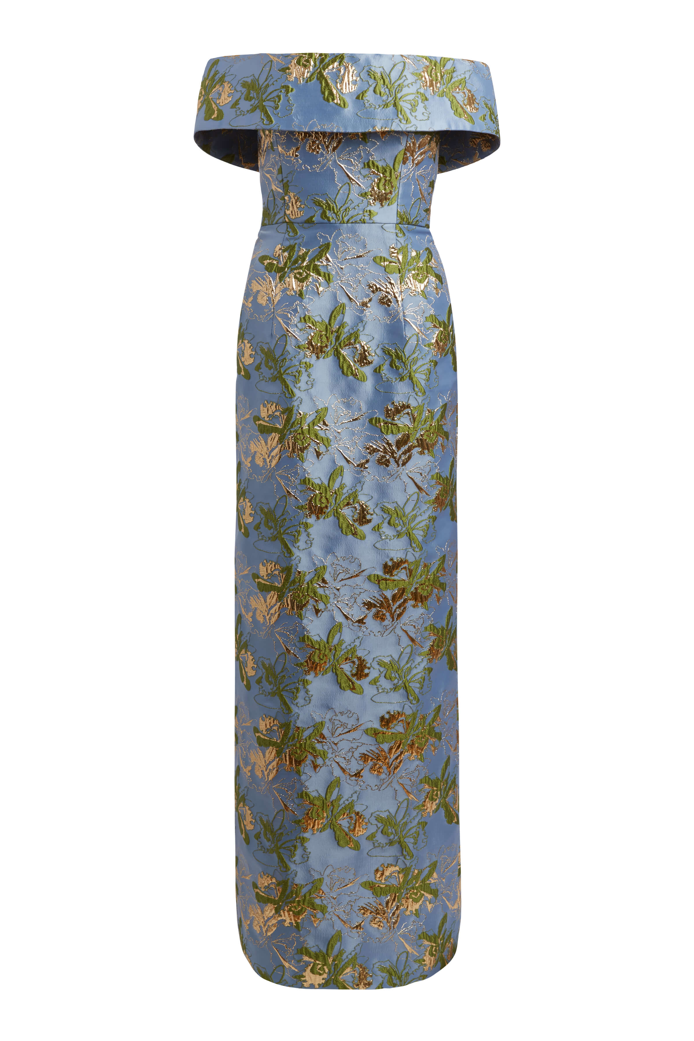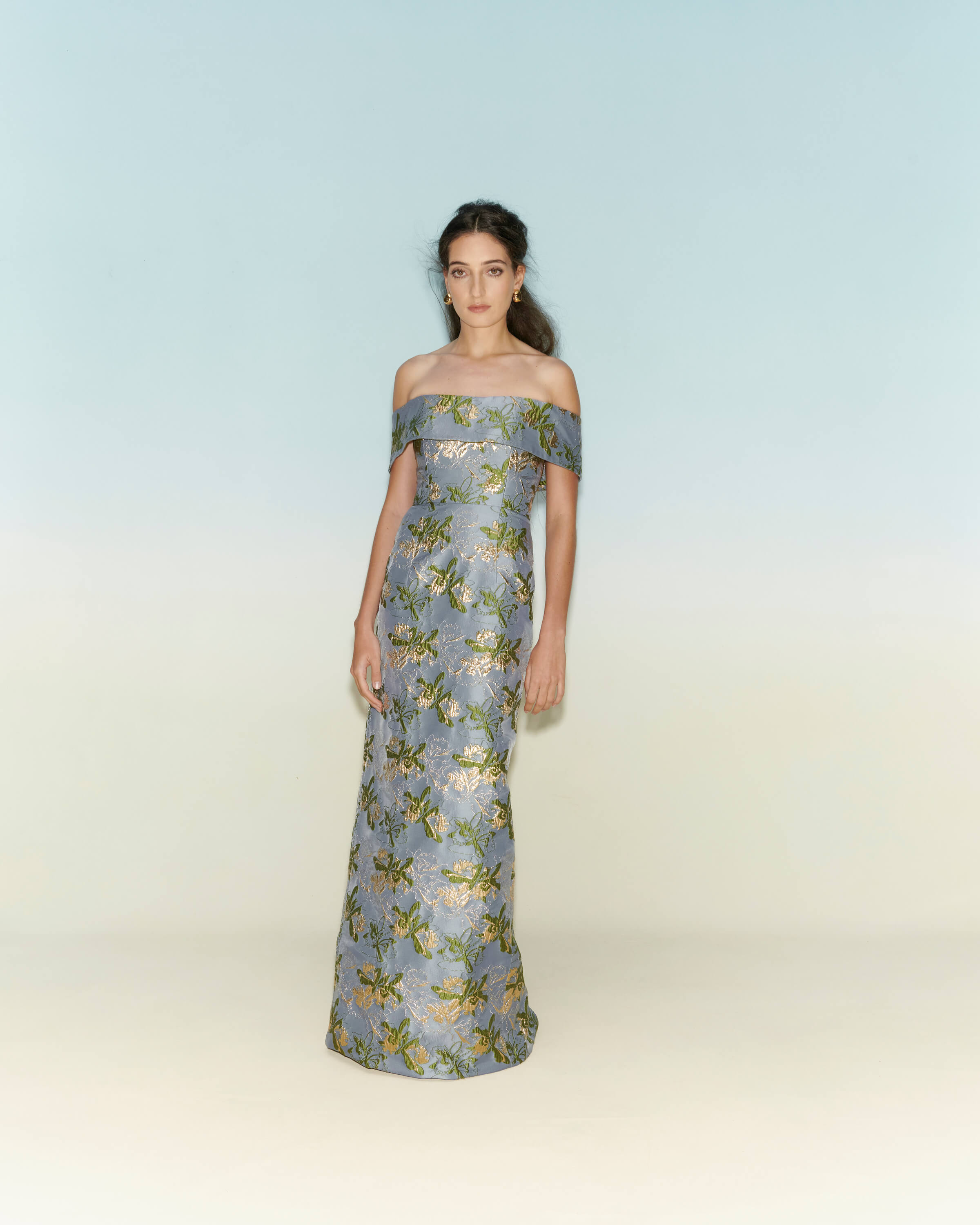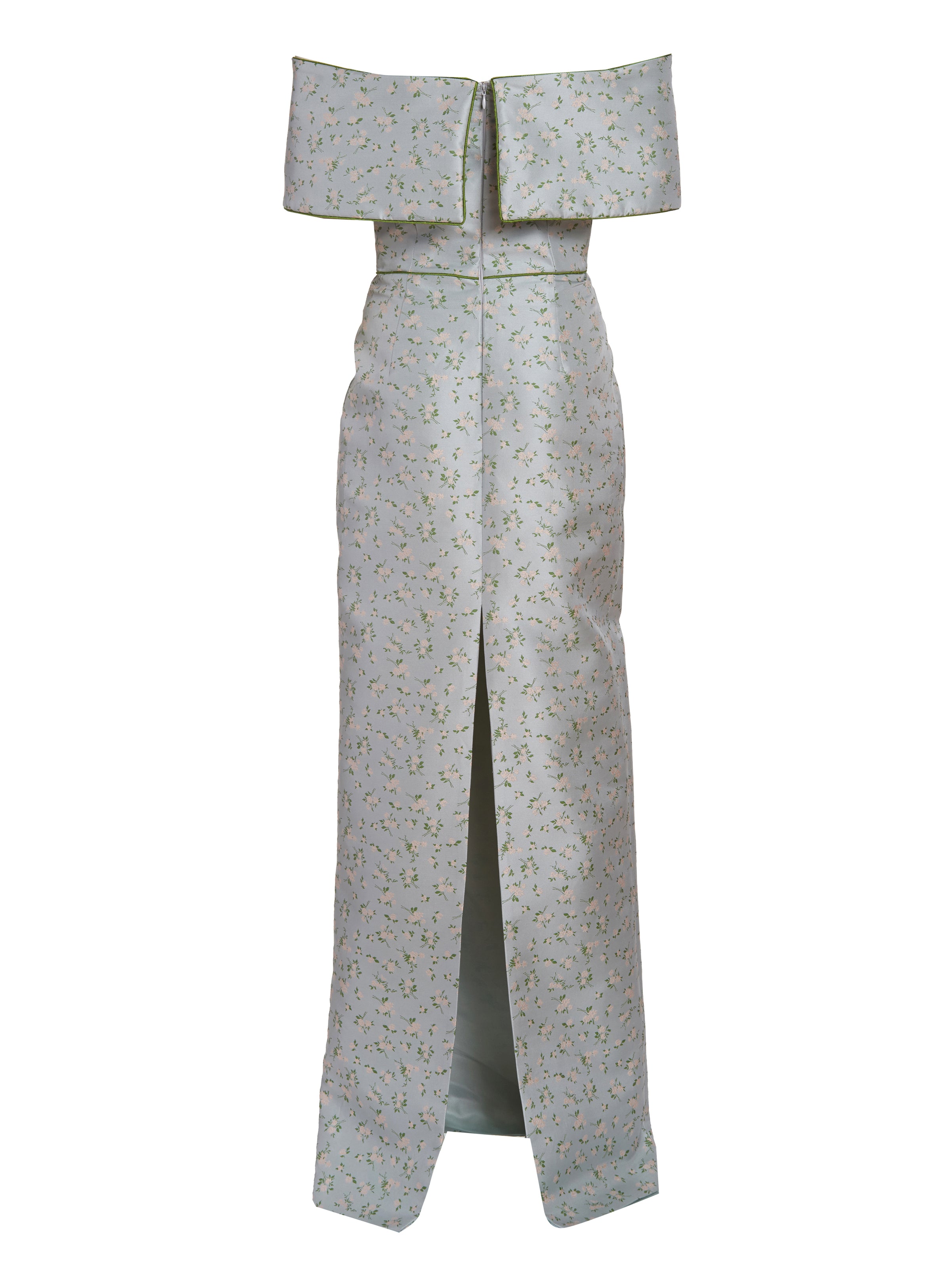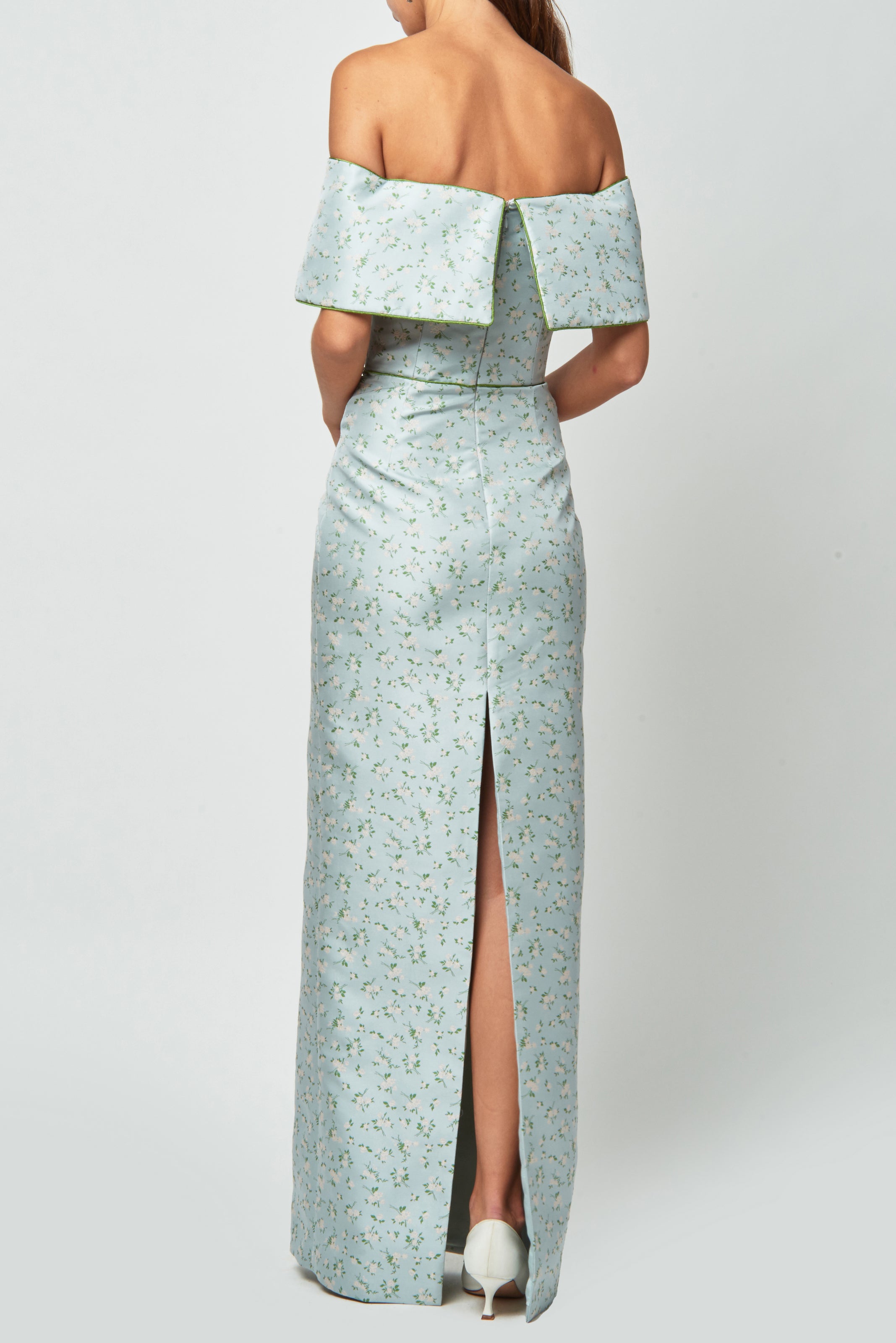 PRE-ORDERCalypso Green Floral Printed Twill Gown