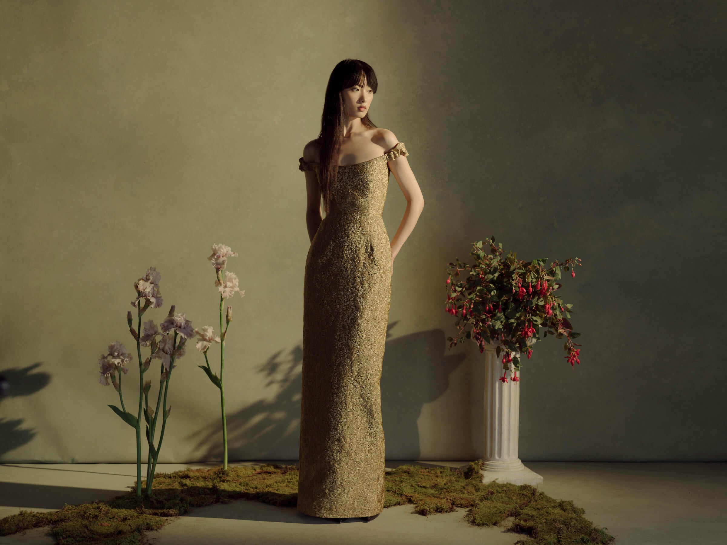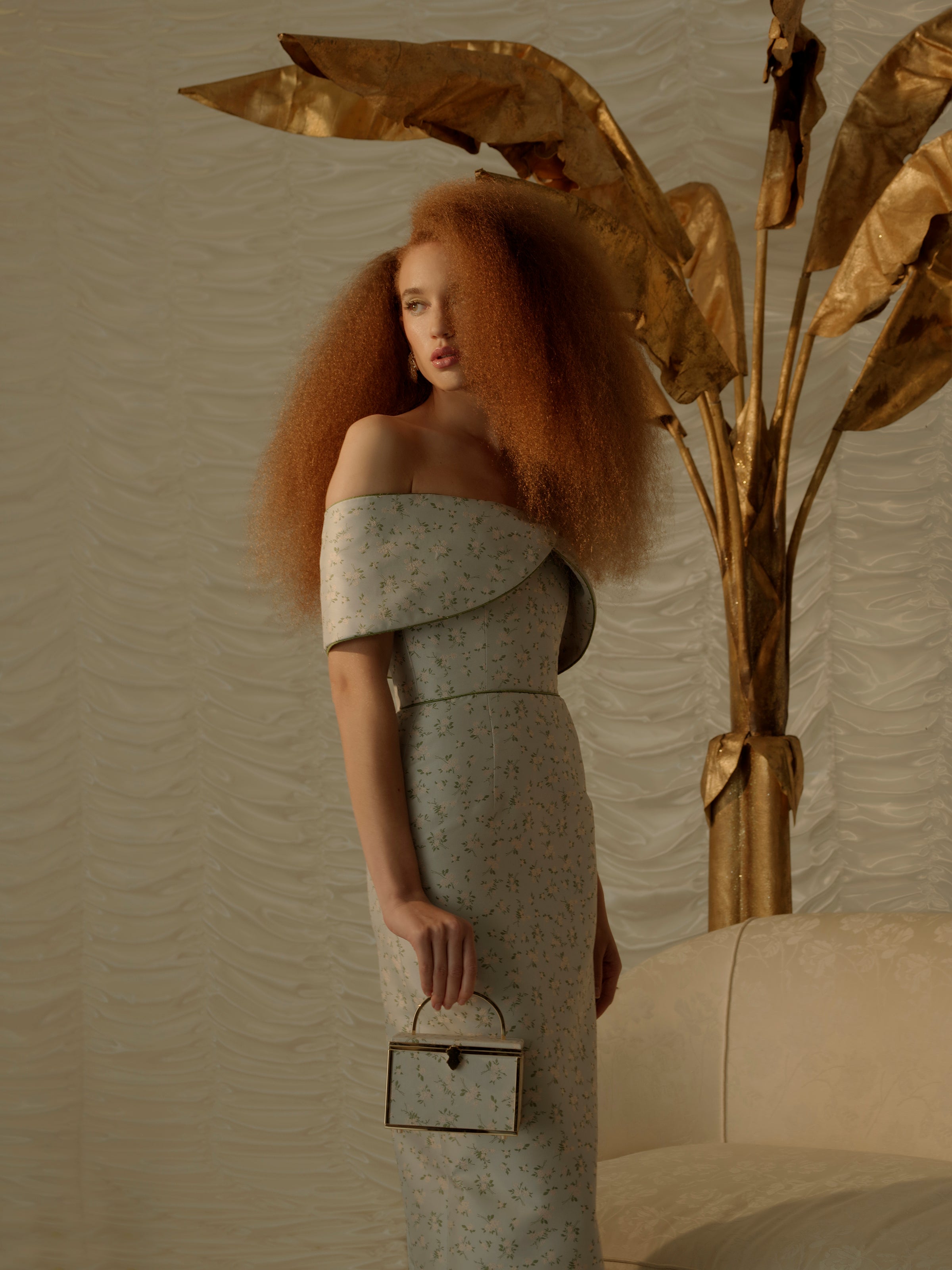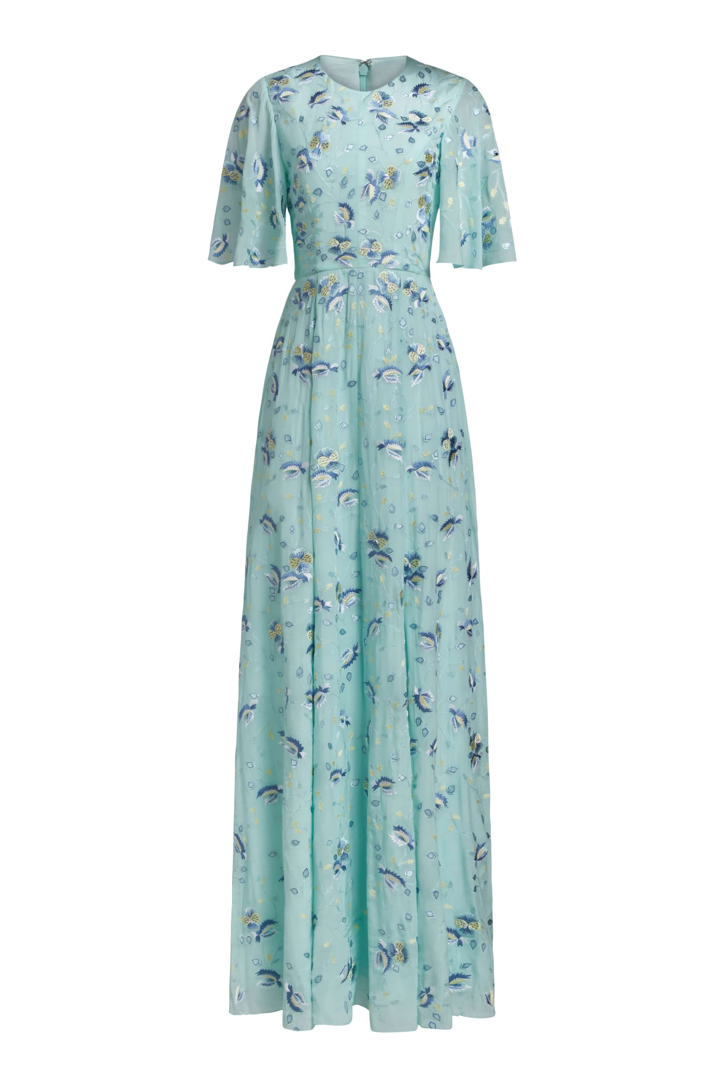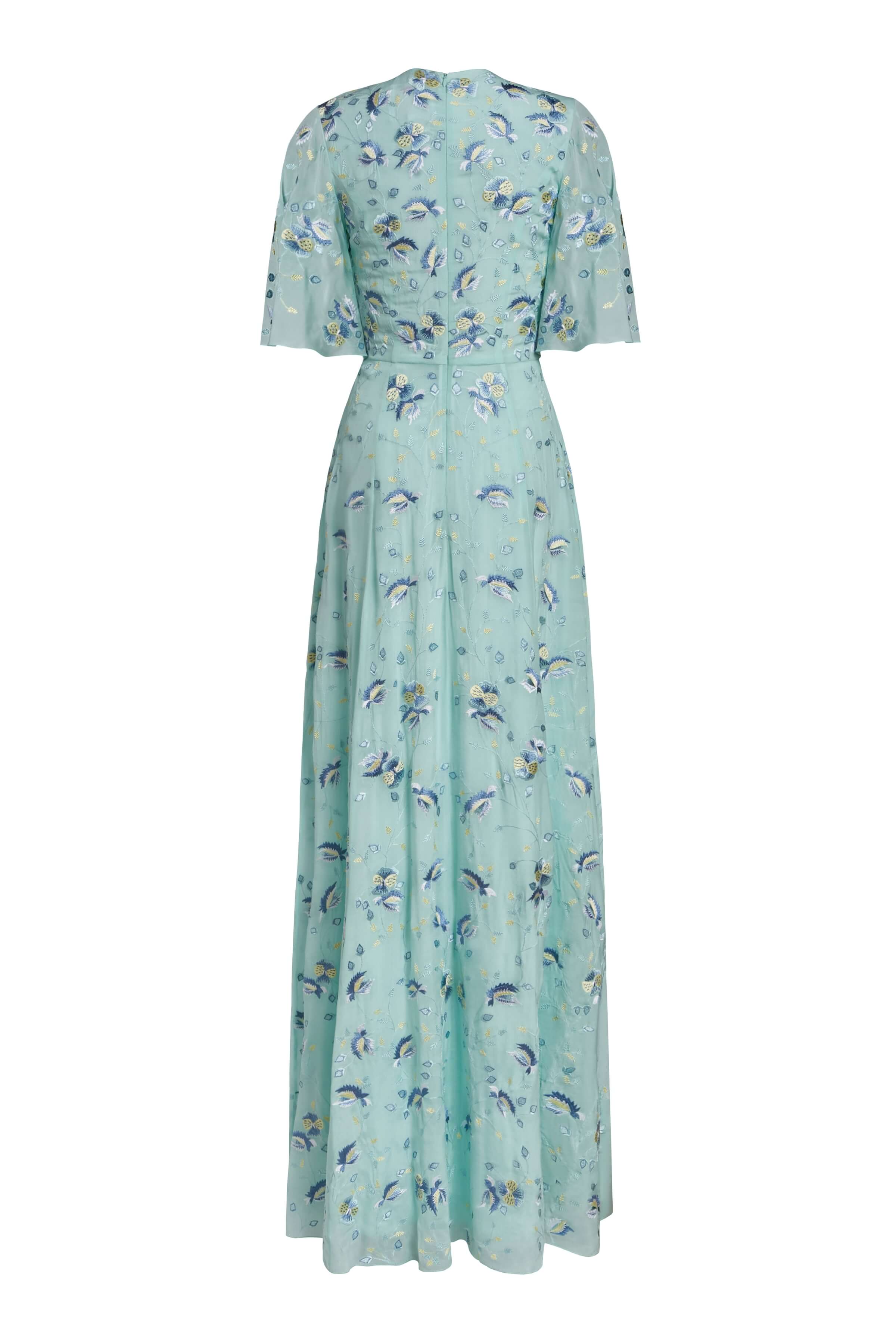 PRE-ORDERCalypso Green Floral Printed Twill Gown