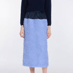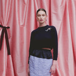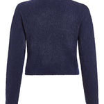 - Navy long sleeve Italian cashmere crewneck sweater with hand embellished floral patch, unlined