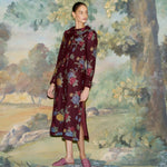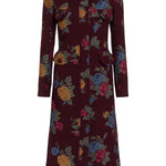 • Cross stitch burgundy wool coat with a peter pan collar and covered buttons, fully lined