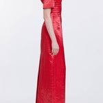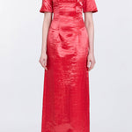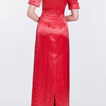 - Pomegranate hammered satin column gown with back slit, fully lined