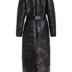 - Cocoon shape faux patent leather coat with self tie belt, fully lined