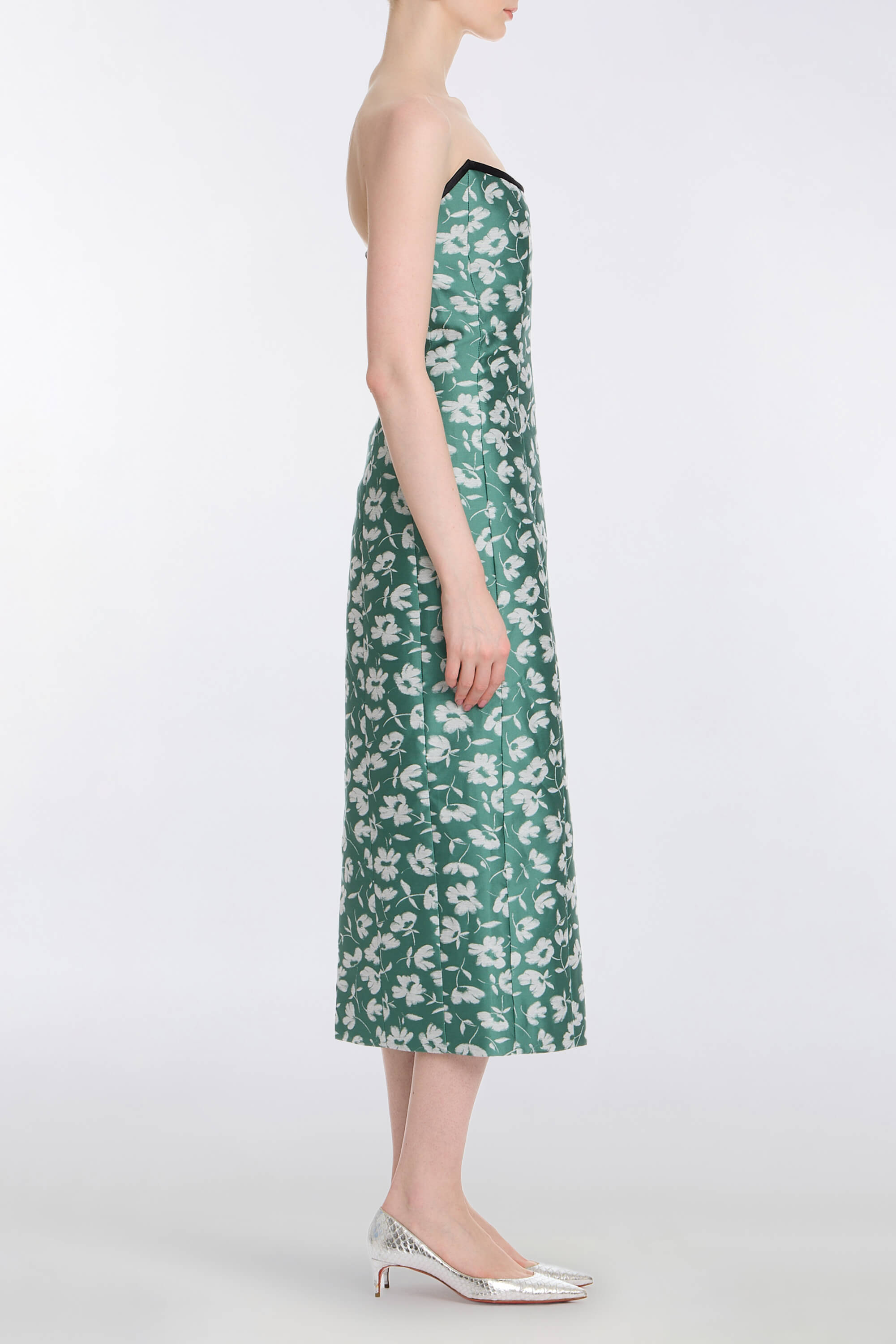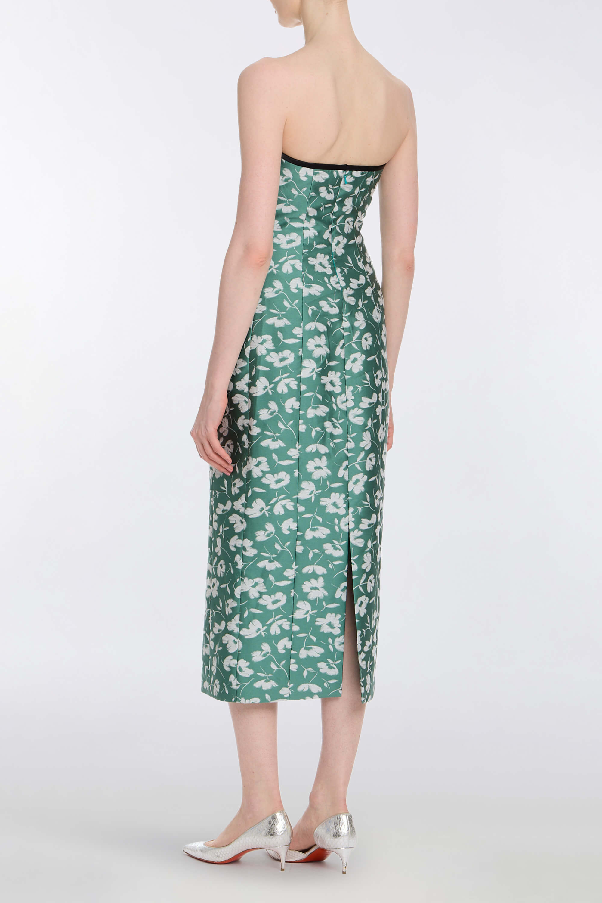 - Strapless midi paneled dress with contrast piping scoop neckline, fully lined