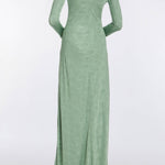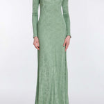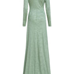 Coco Pistachio Green Floral Jersey Long Sleeve Gown