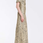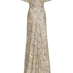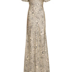 - Bias cut balloon sleeve gown with front and back deep v neckline, fully lined