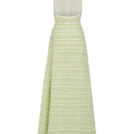- Lime green textured stripe organza jacquard halter neck gown, fully lined