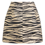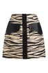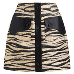 - Zebra-striped twill button-up mini skirt with functional safari-style cargo pockets. Fully lined.