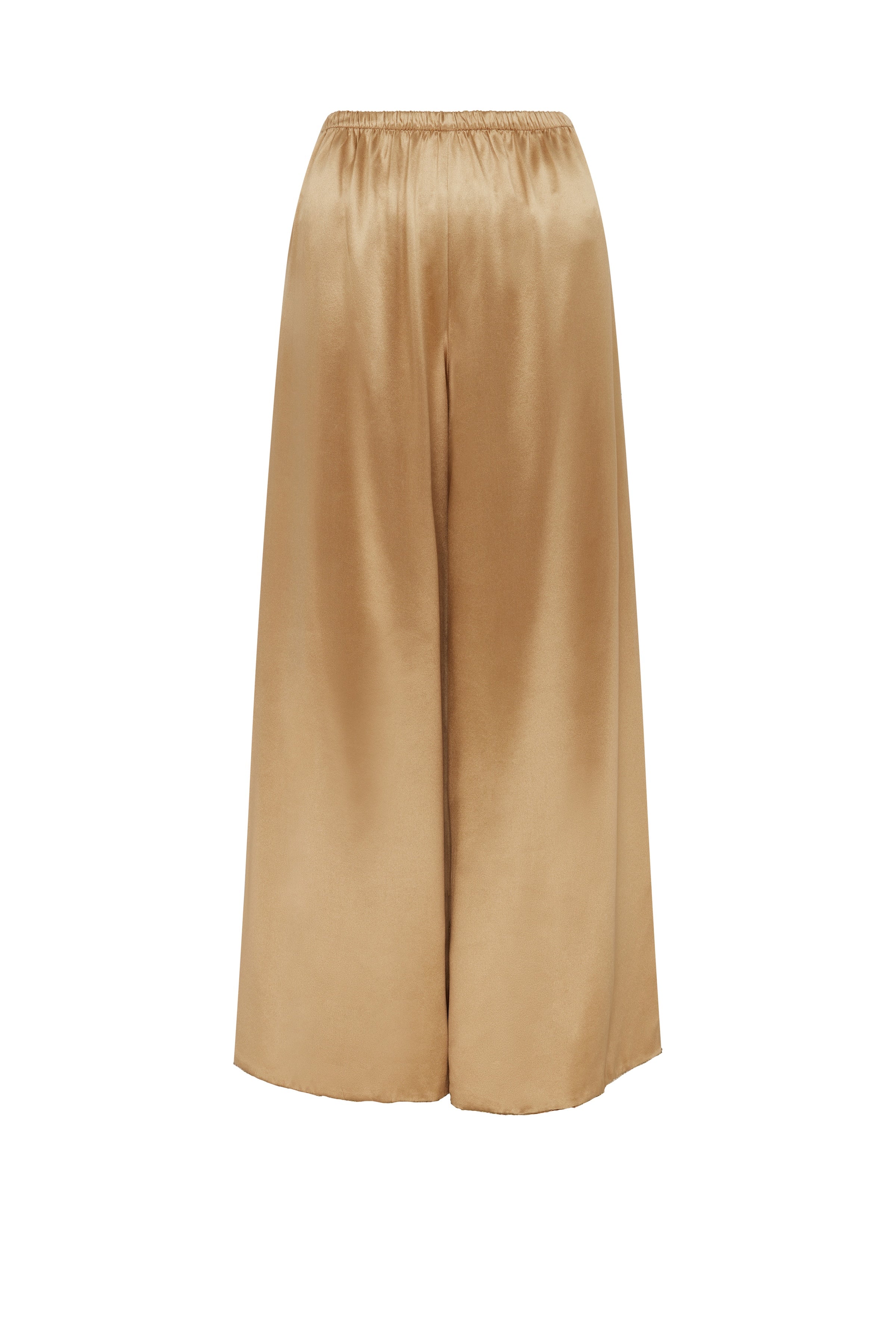 - Gold silk pull-on pant with elastic waist band, unlined