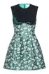 Jolie Green and White Floral Brocade Contrasting Bodice Mini Dress