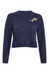 - Navy long sleeve Italian cashmere crewneck sweater with hand embellished floral patch, unlined