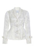 - Off-white floral satin jacquard peplum jacket with bow cuff detail, fully lined