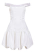 - Off-white silk faille off-the-shoulder drop waist bubble hem mini dress with satin neckline, fully lined