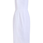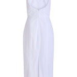 • White floral eyelet cotton scooped neck corset bodice, column midi skirt with back slit