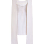 - Deep-v back, bow shoulder detail with long sash, waist train, zip closure, fully lined