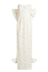 - Evora White Beaded Lace Strapless Gown with detachable bow