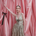 - Drop waist midi dress with deep v and key hole cut out, fully lined