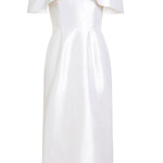 Eveline Off-The-Shoulder White Satin Dupioni Dress