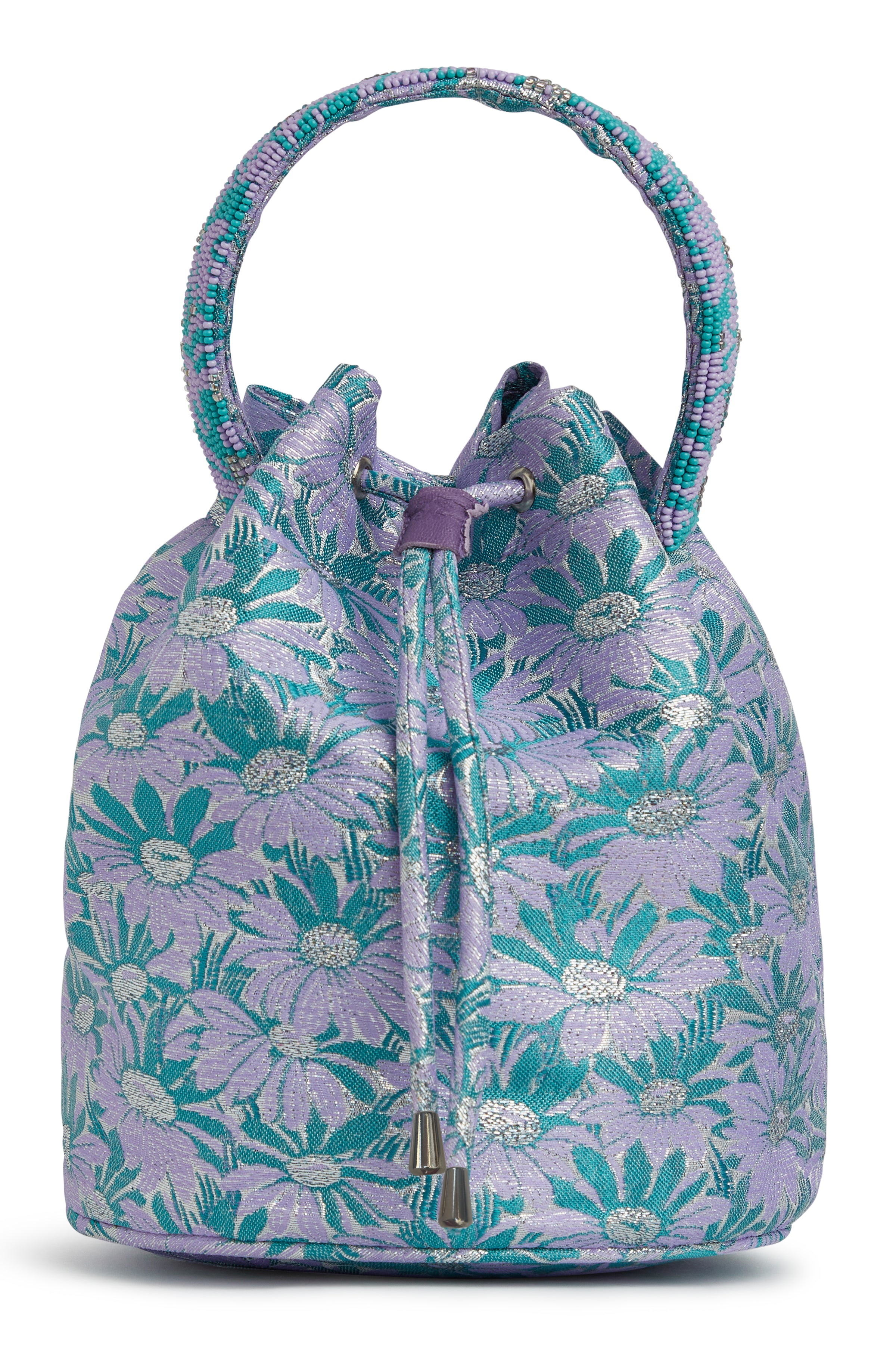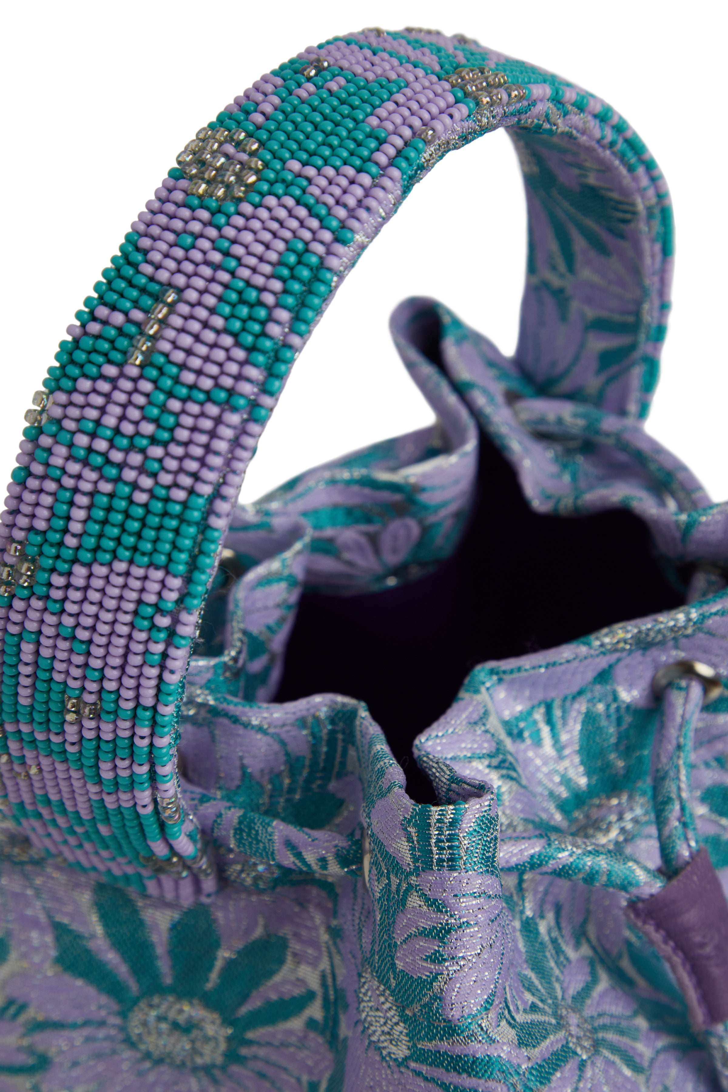 Teal And Purple Daisy Brocade Closed Toe Wedge