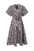 - Shadow floral taffeta midi a-line dress with pockets, wide sleeves, and self tie belt, fully lined