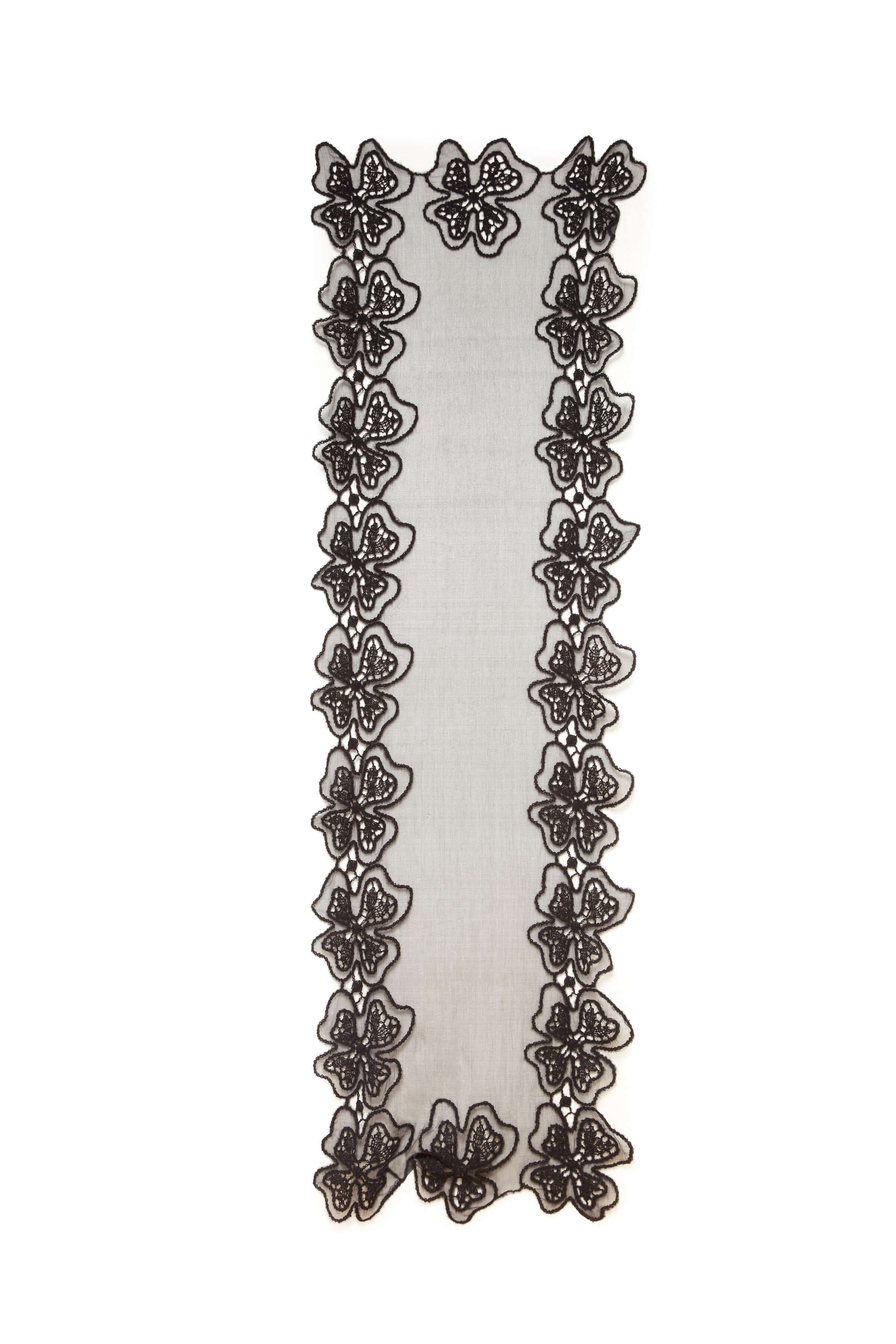 - Sheer black floral embroidered scarf