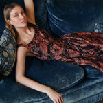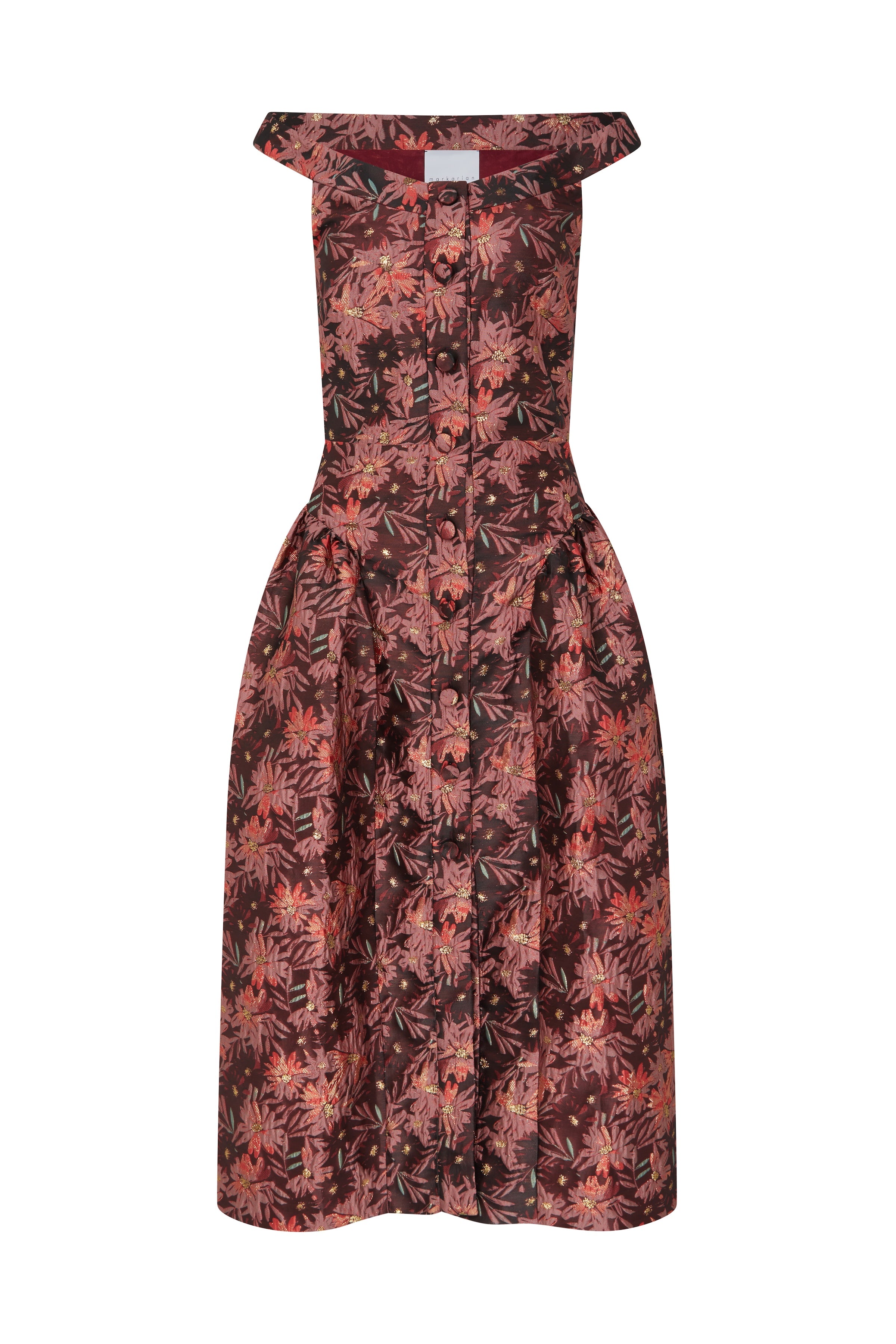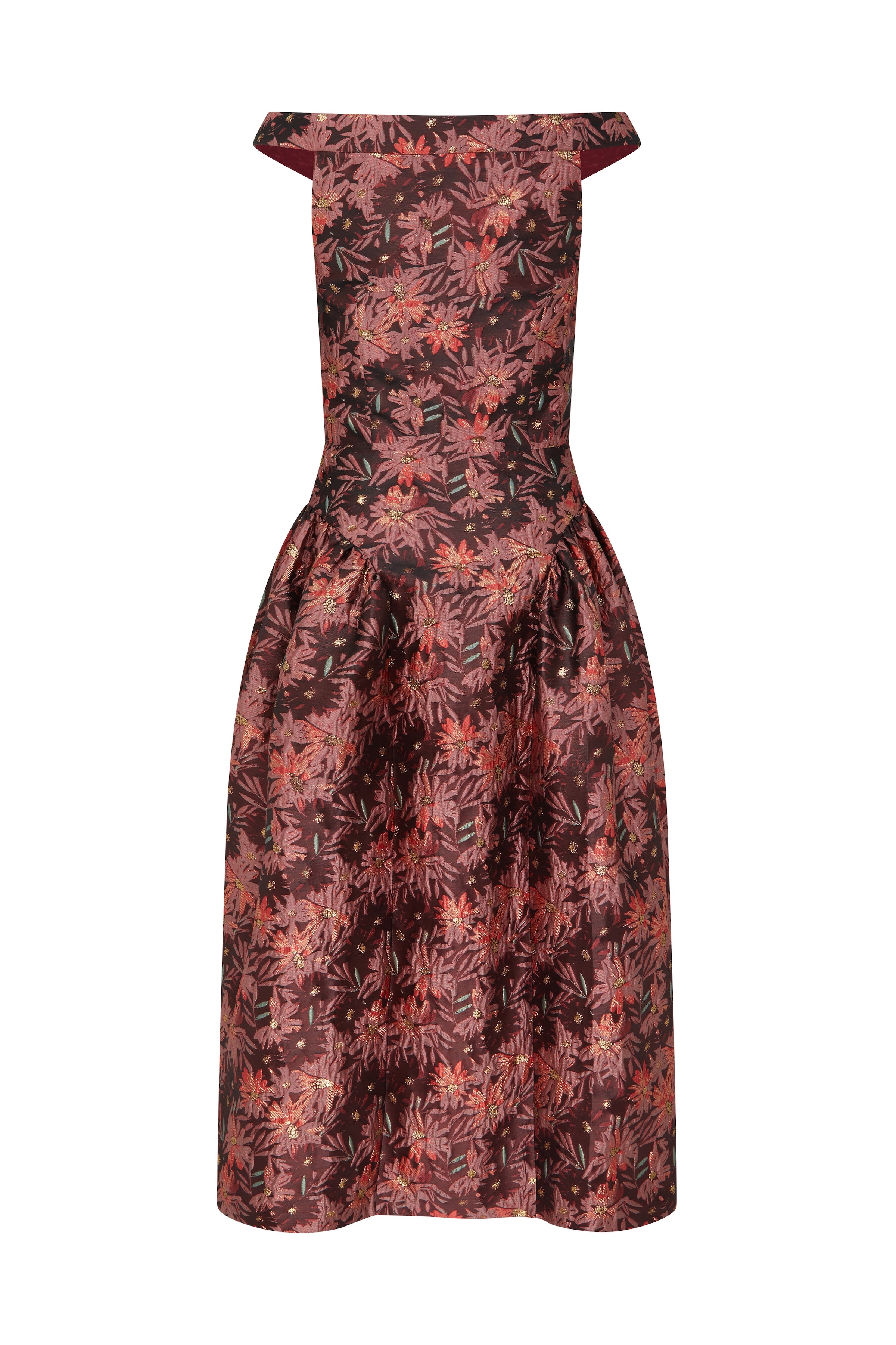 Opal Burgundy Floral Brocade Drop Waist Dress