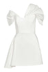 - White silk mini dress with asymmetric neckline and gathered side detail