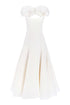 - Off-white silk faille drop waist off-the-shoulder midi dress with open back, fully lined