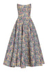 Watercolor ikat linen sweetheart neckline strapless midi dress with full skirt, fully lined