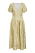 • Dropped waist midi dress with flounce hem and v neck, fully lined