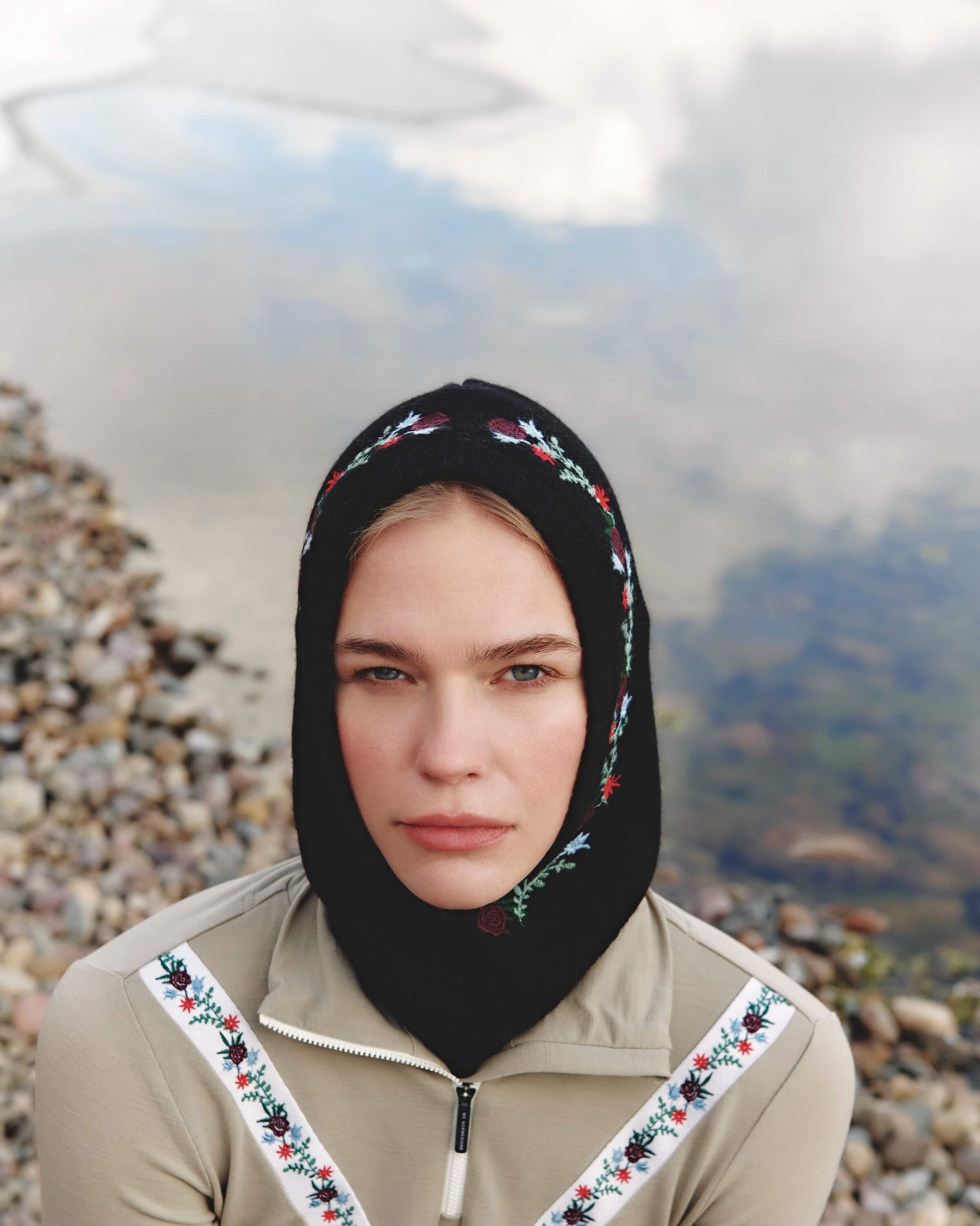 This balaclava is knitted from 100% wool featuring intarsia flowers, creating a seamless match in both texture and design. It is finished with delicate flower embroidery along the edge of the hood for a charming detail. Each piece is individually numbered, making it a unique addition to this exclusive limited edition collection.