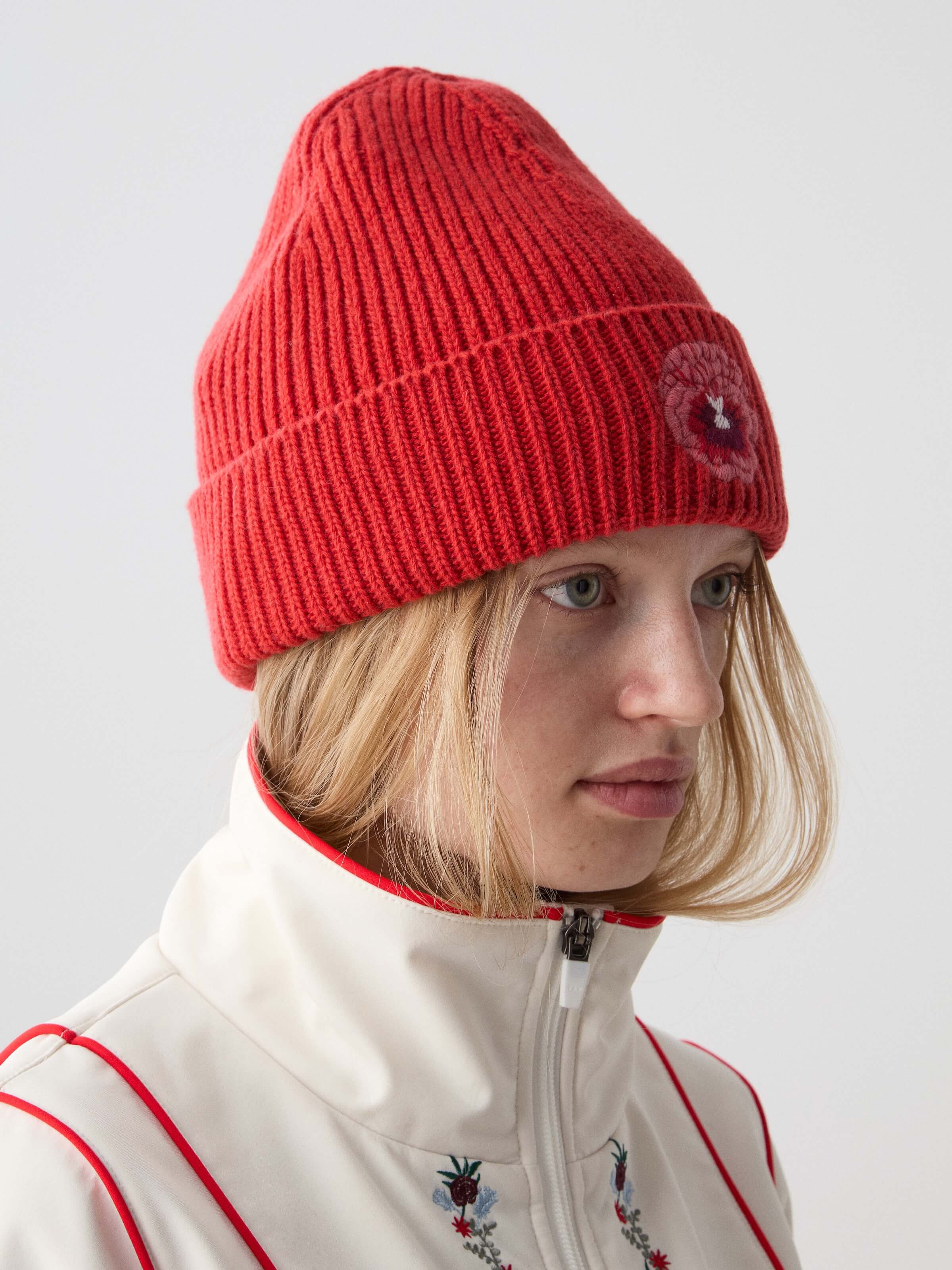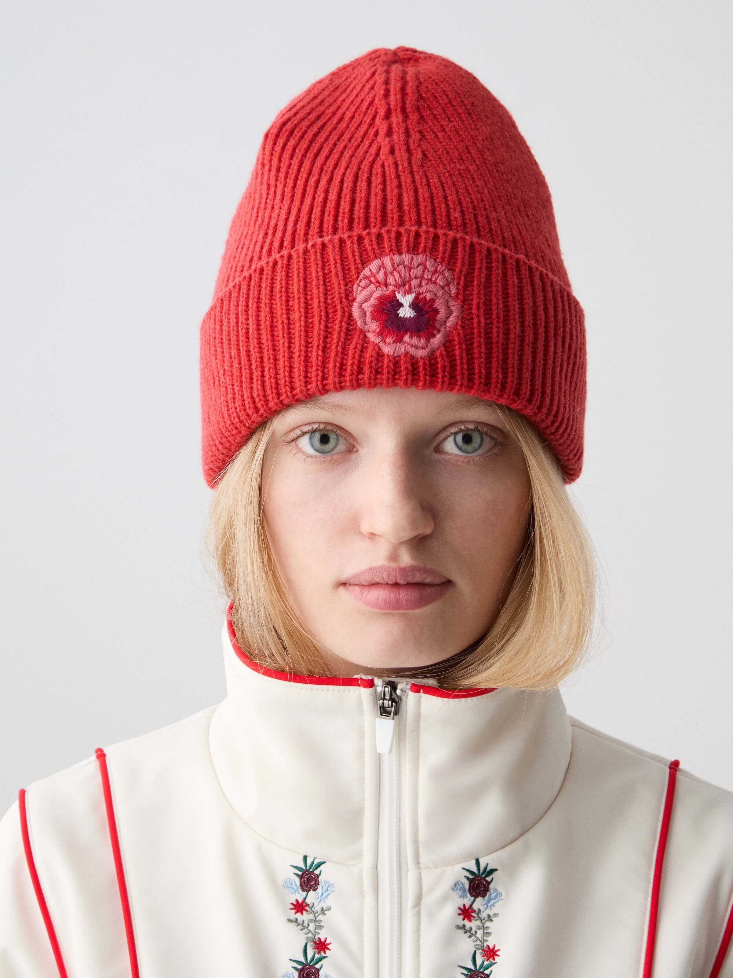This hat is knitted from 100% wool featuring the floral intarsia, creating a perfect match in texture and design. Crafted in a half cardigan stitch, it’s finished with the signature embroidered flower at the front for a distinctive touch. Each piece is individually numbered, making it a unique item in this limited edition collection.