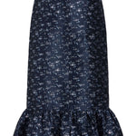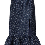 - Midi length pencil skirt with front slit and ruffle hem, fully lined