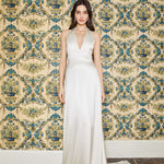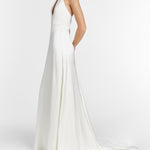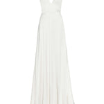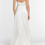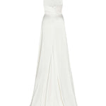 Francoise White Silk V Neck Halter Gown With Train