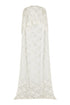 - Beaded white lace cape with scalloped hem