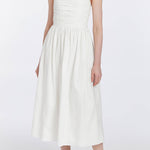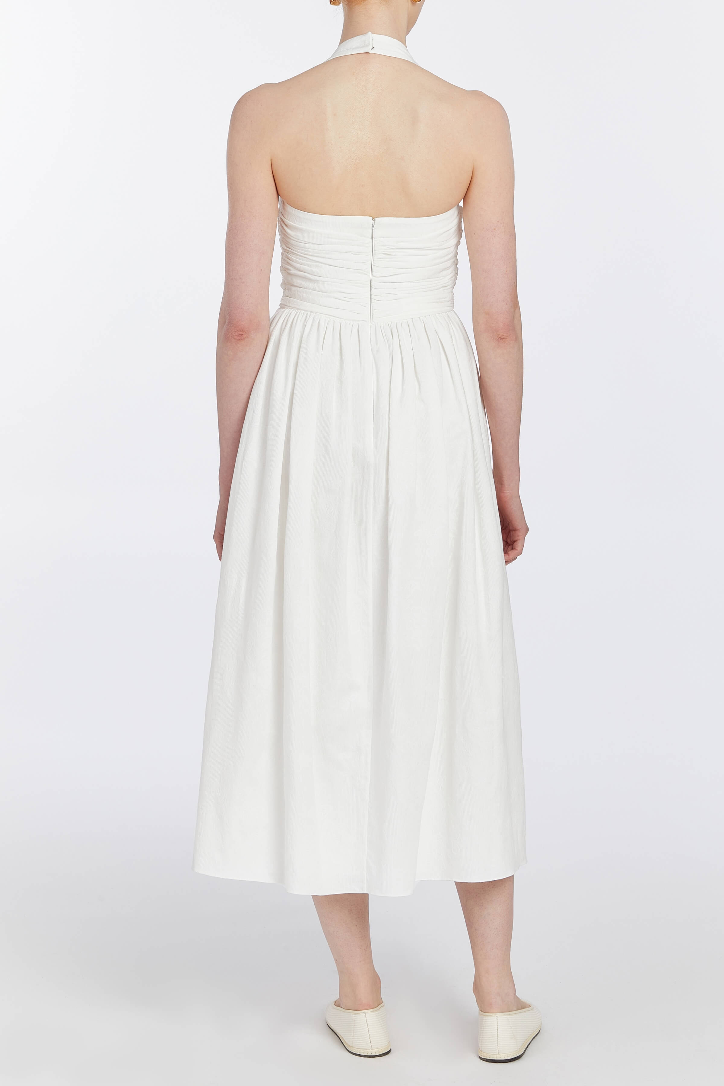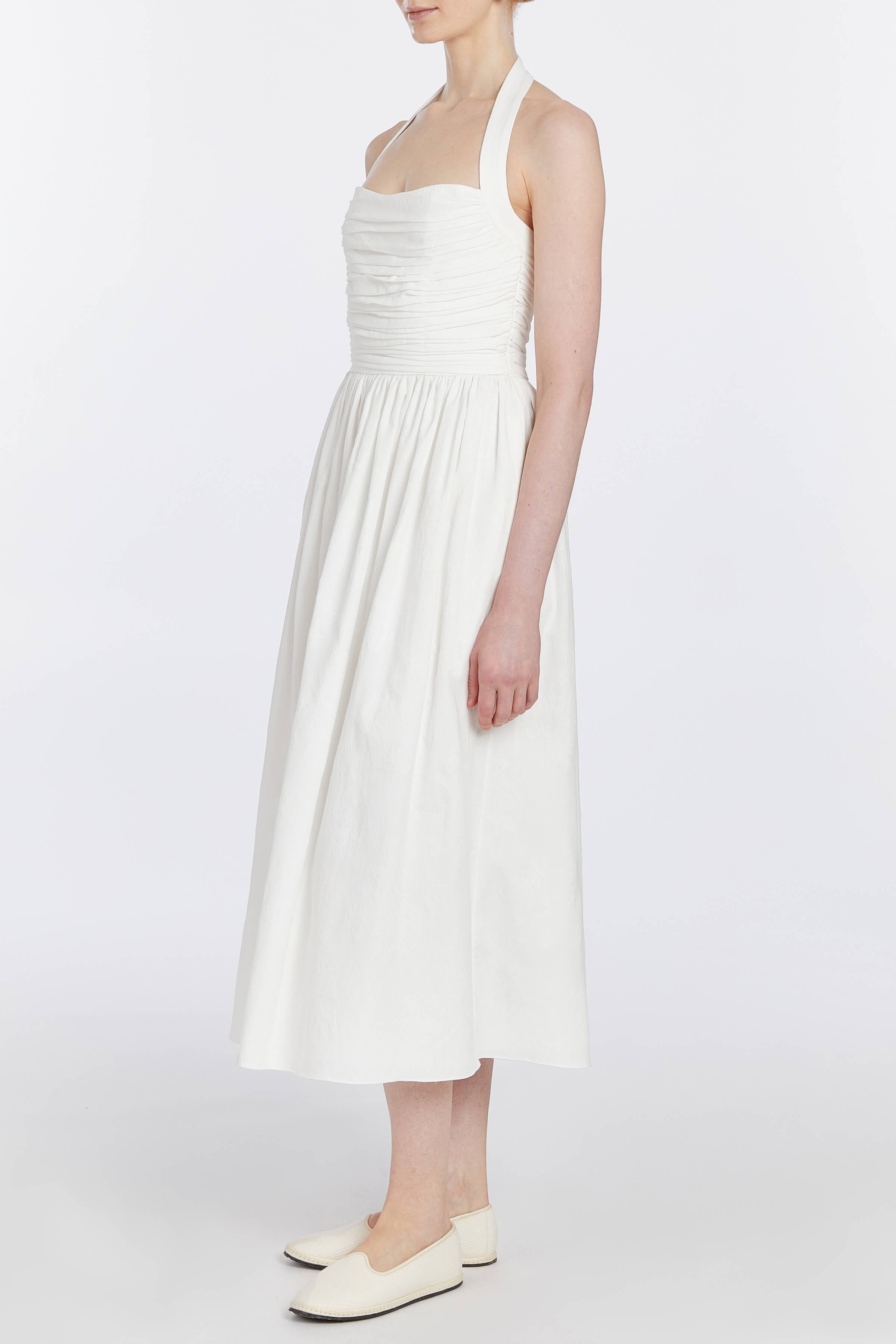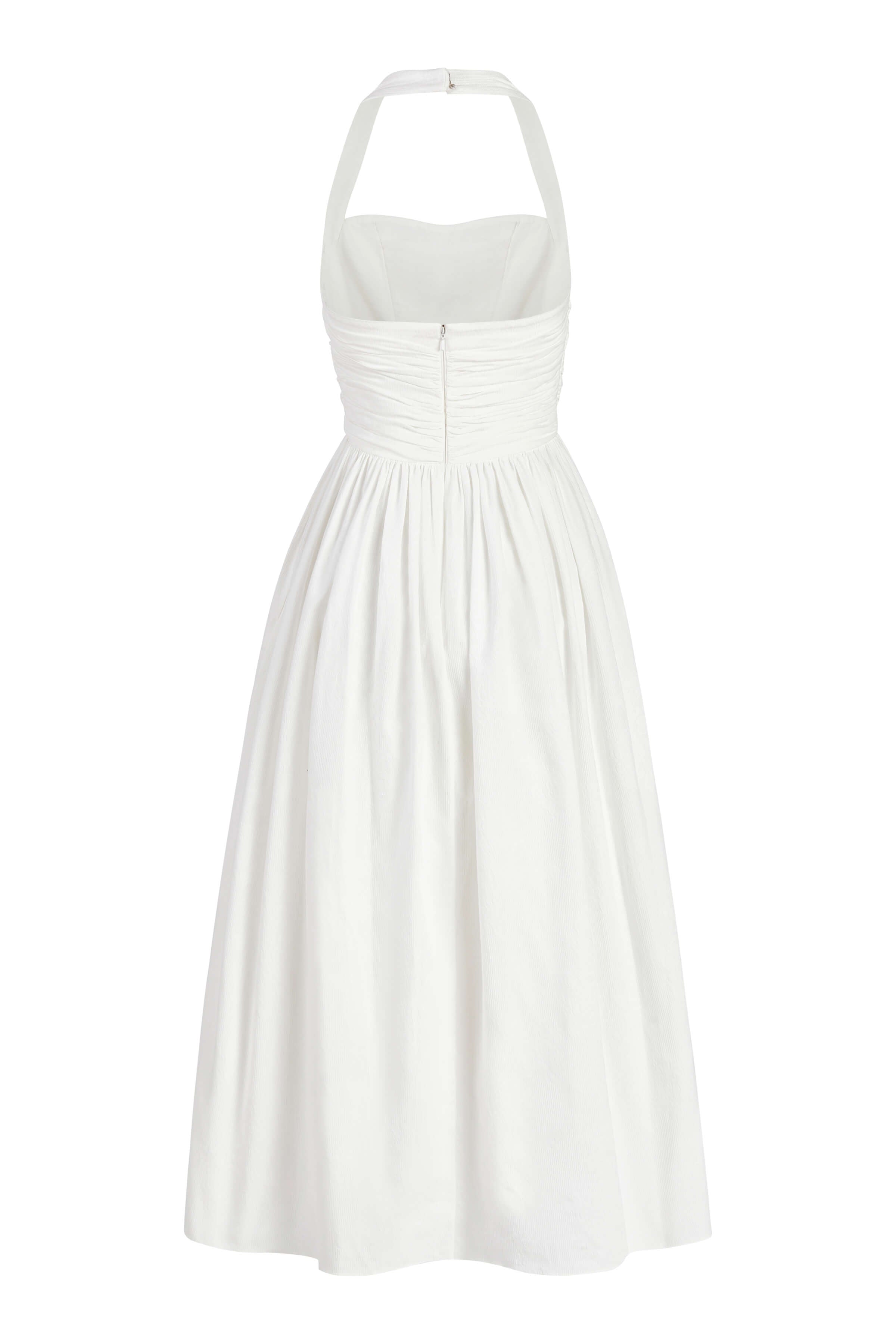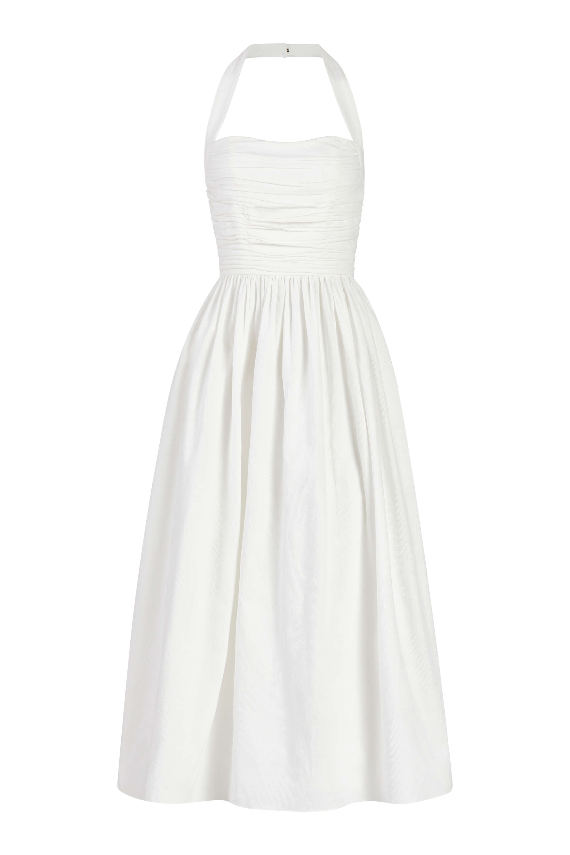 Leia Off-White Ruched Halter Midi Dress