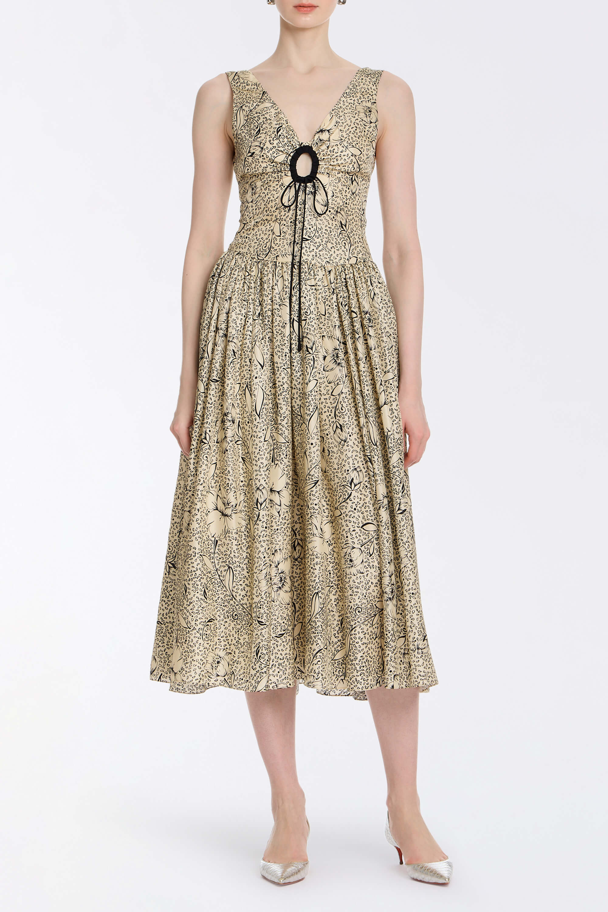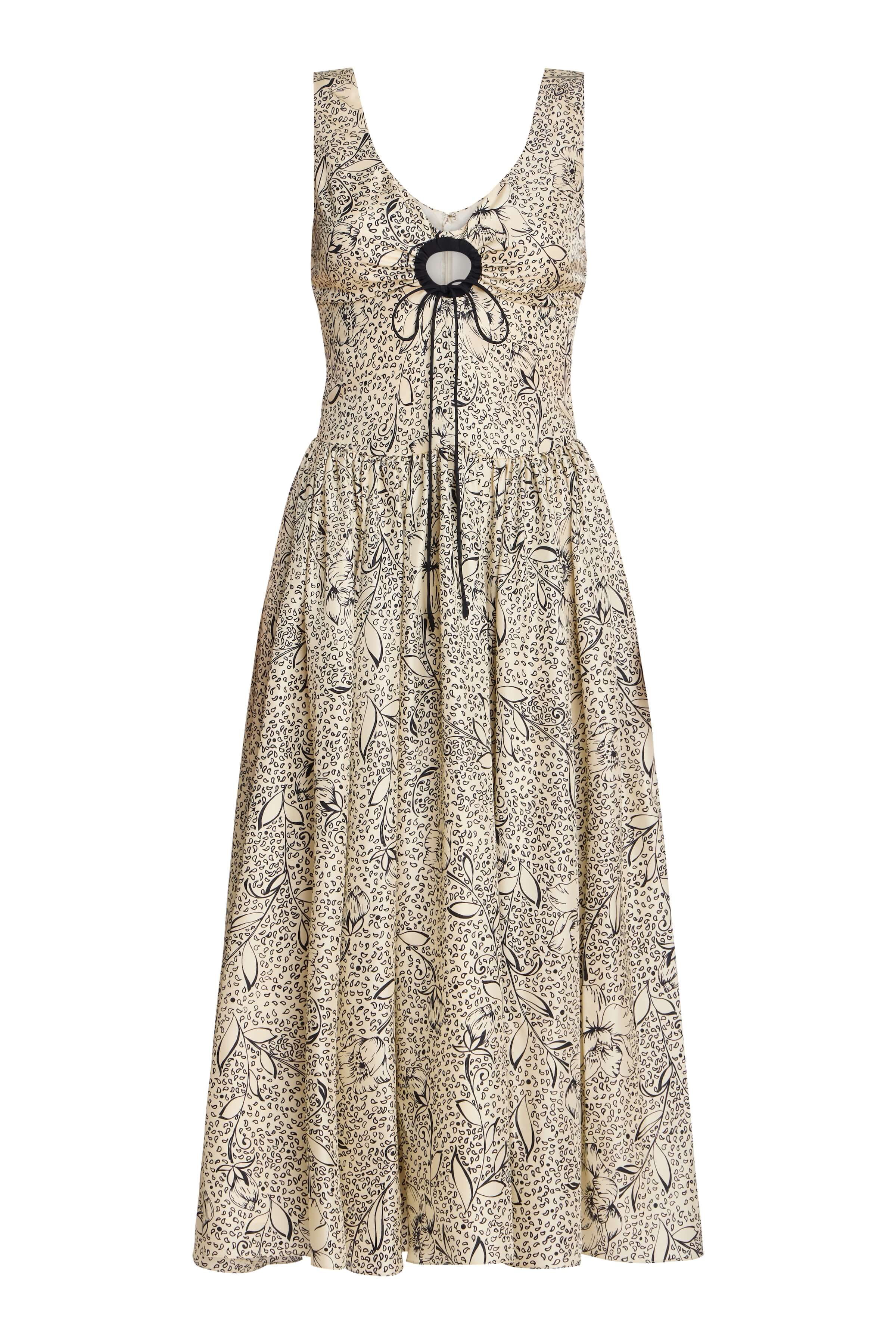 Penelope Black Floral Printed Twill Keyhole Midi Dress