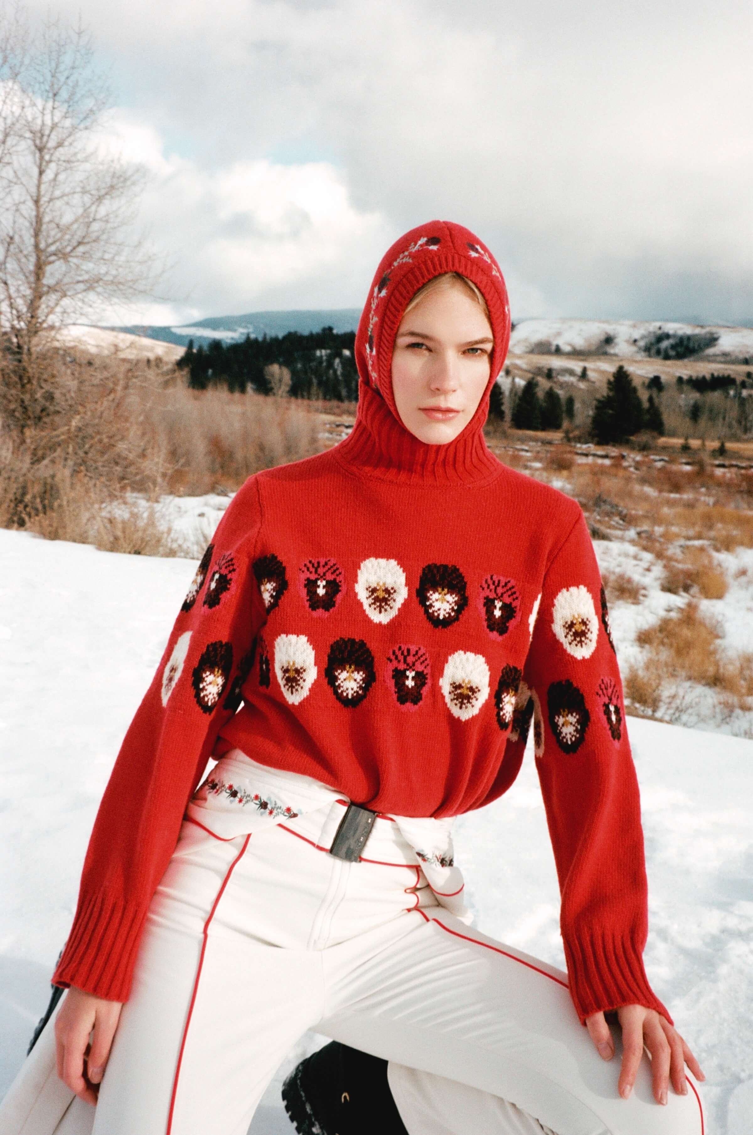 This balaclava is knitted from 100% wool featuring intarsia flowers, creating a seamless match in both texture and design. It is finished with delicate flower embroidery along the edge of the hood for a charming detail. Each piece is individually numbered, making it a unique addition to this exclusive limited edition collection.